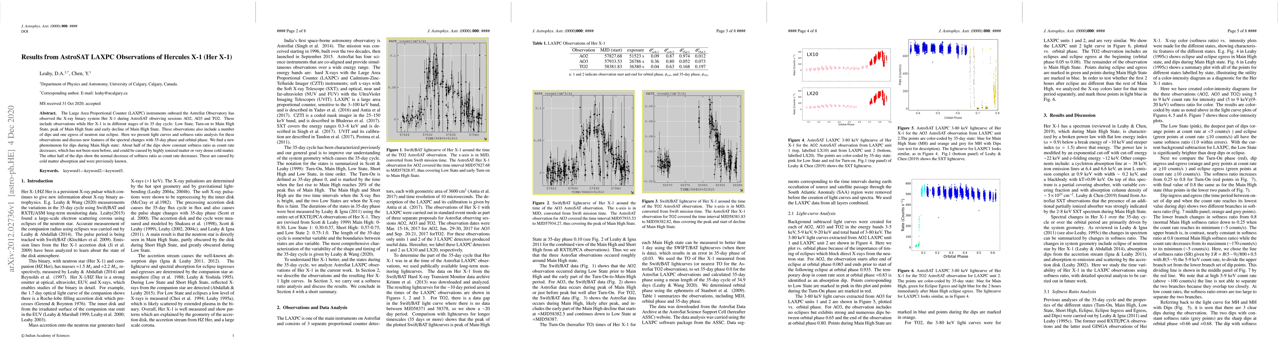 The Large Area Proportional Counter (LAXPC) instruments onboard the AstroSat Observatory has observed the X-ray binary system Her X-1 during AstroSat observing sessions AO2, AO3 and TO2. These include observations while Her X-1 is in different stages of its 35 day cycle: Low State, Turn-on to Main High State, peak of Main High State and early decline of Main High State. These observations also include a number of dips and one egress of neutron star eclipse. Here we present light curves and softness ratio analysis for these observations and discuss new features of the spectral changes with 35-day phase and orbital phase. We find a new phenomenon for dips during Main High state: About half of the dips show constant softness ratio as count rate decreases, which has not been seen before, and could be caused by highly ionized matter or very dense cold matter. The other half of the dips show the normal decrease of softness ratio as count rate decreases. These are caused by cold matter absorption and were previously known.