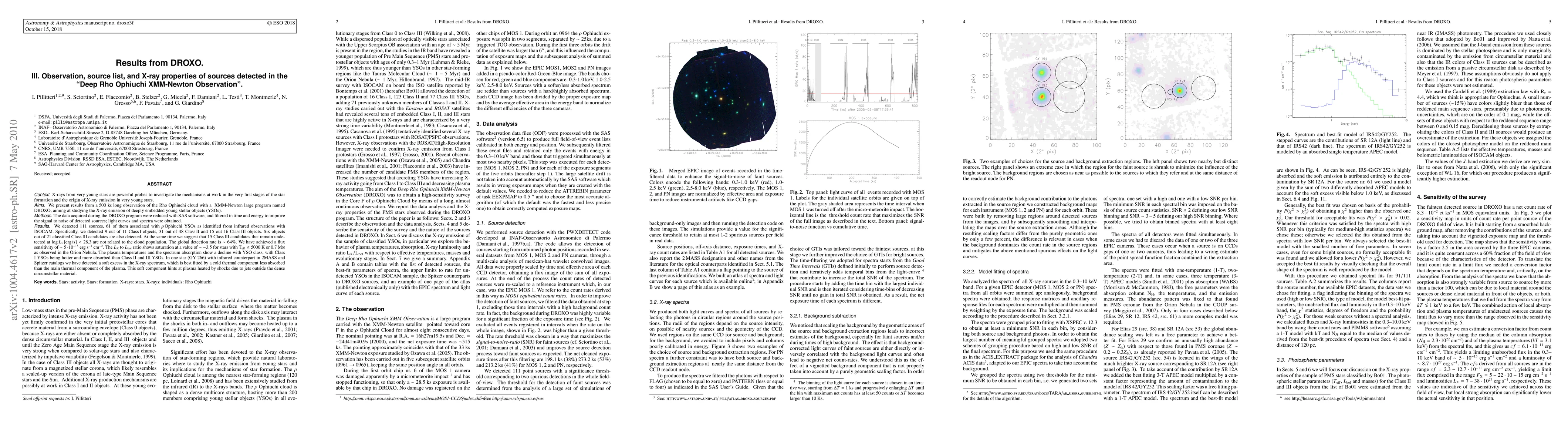 A 500 ks XMM-Newton observation of Rho Ophiuchi detected 111 sources, with 64% global detection rate, revealing insights into the origins of X-ray emission in young stars, including plasma temperatures and spectrum absorption patterns.