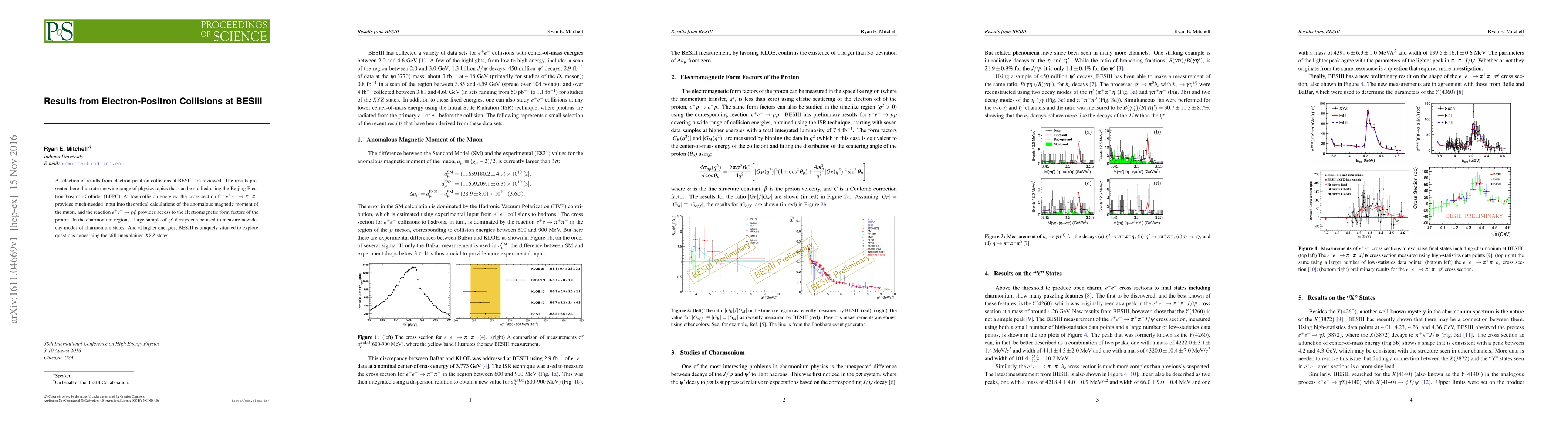 A selection of results from electron-positron collisions at BESIII are reviewed. The results presented here illustrate the wide range of physics topics that can be studied using the Beijing Electron Positron Collider~(BEPC). At low collision energies, the cross section for $e^+e^-\to \pi^+\pi^-$ provides much-needed input into theoretical calculations of the anomalous magnetic moment of the muon, and the reaction $e^+e^-\to p\bar{p}$ provides access to the electromagnetic form factors of the proton. In the charmonium region, a large sample of $\psi^\prime$ decays can be used to measure new decay modes of charmonium states. And at higher energies, BESIII is uniquely situated to explore questions concerning the still-unexplained $XYZ$ states.