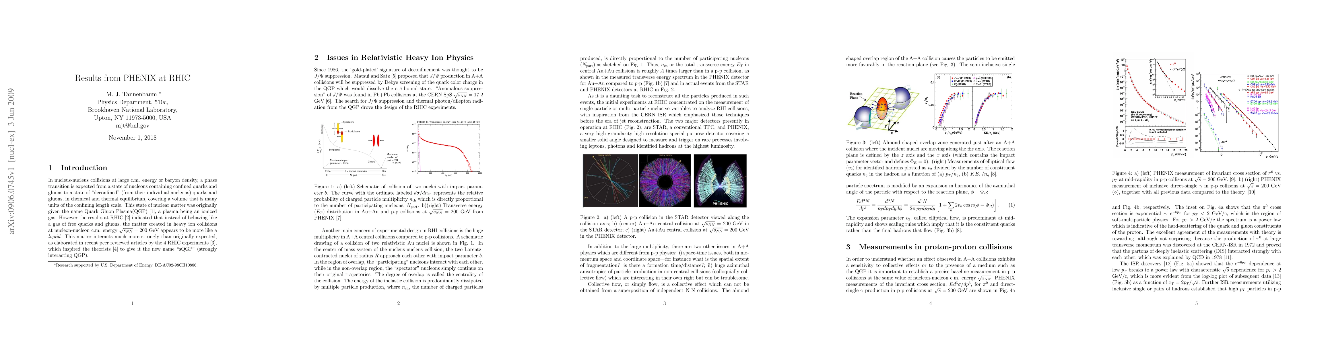 Results from PHENIX at RHIC in p-p and Au+Au collisions are presented from the perspective of measurements in p-p collisions at the CERN ISR which serve as a basis for many of the techniques used. Notable results include the equality of the suppression of inclusive pi0 and direct electrons (from the decay of heavy quarks) in the range of transverse momentuum 4 < pT < 9 GeV/c in central Au+Au collisions. This result appears to strongly disfavor the explanation of suppression as due to radiative energy loss of partons traversing a Quark Gluon Plasma but opens up a fundamental discussion of how Fermions get mass, whether all six quarks are nearly massless in a QGP and how to test this.