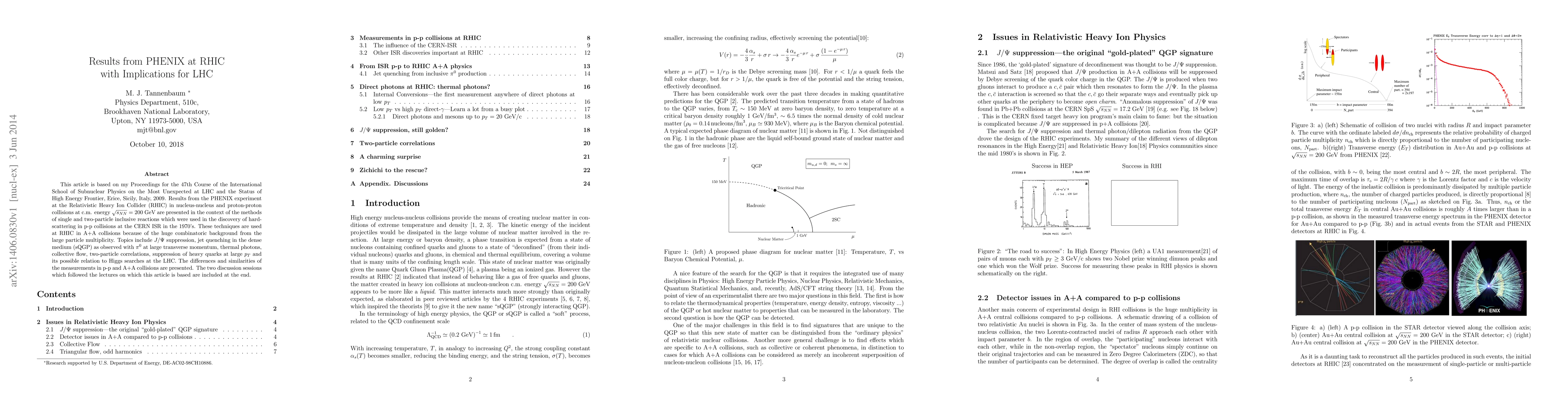 This article is based on my Proceedings for the 47th Course of the International School of Subnuclear Physics on the Most Unexpected at LHC and the Status of High Energy Frontier, Erice, Sicily, Italy, 2009. Results from the PHENIX experiment at the Relativistic Heavy Ion Collider (RHIC) in nucleus-nucleus and proton-proton collisions at c.m. energy $\sqrt{s_{NN}}=200$ GeV are presented in the context of the methods of single and two-particle inclusive reactions which were used in the discovery of hard-scattering in p-p collisions at the CERN ISR in the 1970's. These techniques are used at RHIC in A+A collisions because of the huge combinatoric background from the large particle multiplicity. Topics include $J/\Psi$ suppression, jet quenching in the dense medium (sQGP) as observed with $\pi^0$ at large transverse momentum, thermal photons, collective flow, two-particle correlations, suppression of heavy quarks at large $p_T$ and its possible relation to Higgs searches at the LHC. The differences and similarities of the measurements in p-p and A+A collisions are presented. The two discussion sessions which followed the lectures on which this article is based are included at the end.