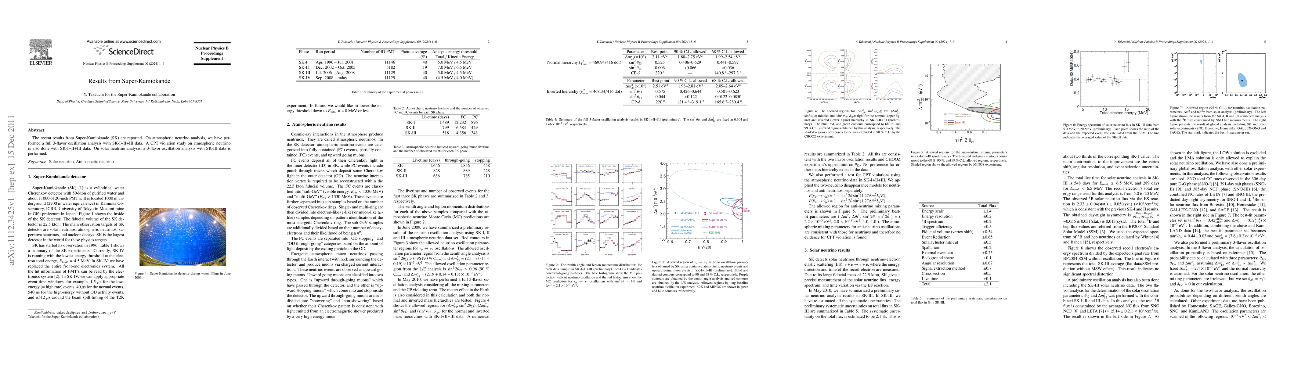 The recent results from Super-Kamiokande (SK) are reported. On atmospheric neutrino analysis, we have performed a full 3-flavor oscillation analysis with SK-I+II+III data. A CPT violation study on atmospheric neutrino is also done with SK-I+II+III data. On solar neutrino analysis, a 3-flavor oscillation analysis with SK-III data is performed.