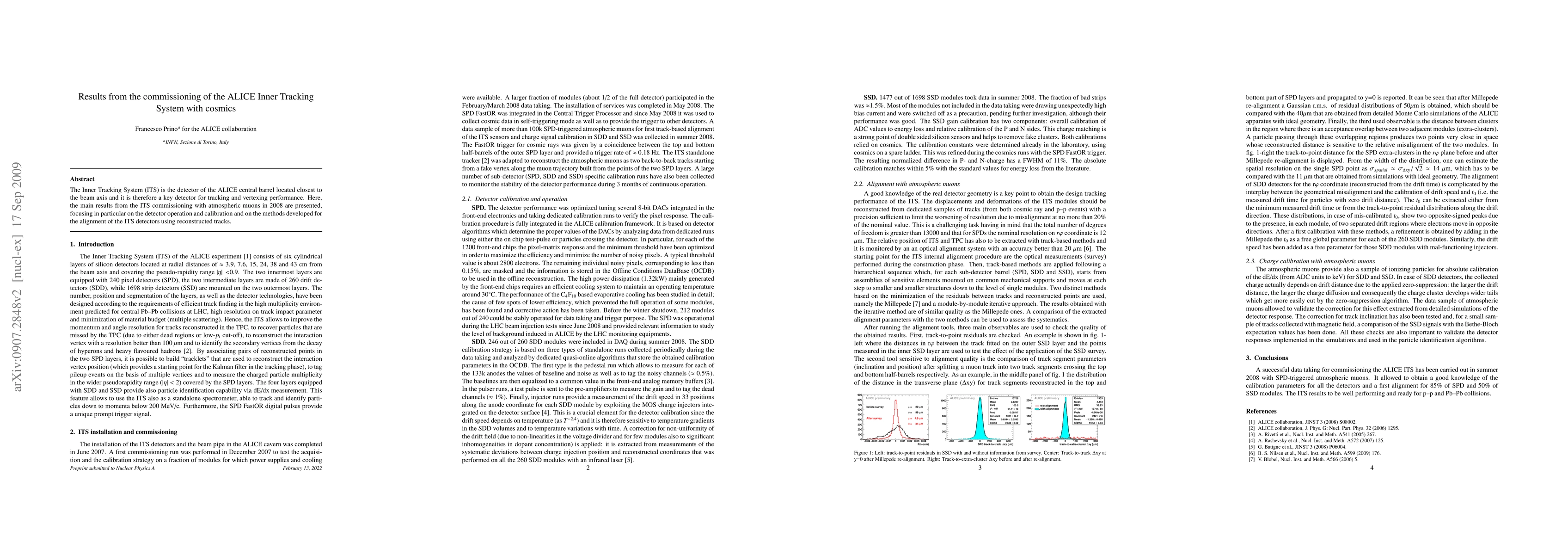 The ALICE Inner Tracking System (ITS) was successfully commissioned using cosmic muons in 2008, demonstrating effective detector operation, calibration, and alignment methods for precise tracking and vertexing. The results highlight the ITS's critical role in particle detection near the beam axis.