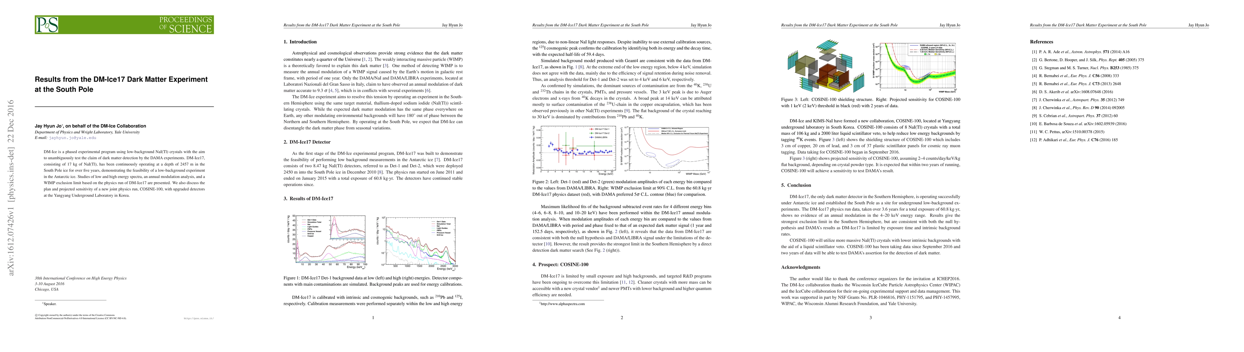 The DM-Ice17 experiment at the South Pole has tested dark matter detection claims using low-background NaI(Tl) crystals over five years, finding no evidence to support DAMA's results. Plans for a new joint run, COSINE-100, with upgraded detectors in Korea are also outlined.