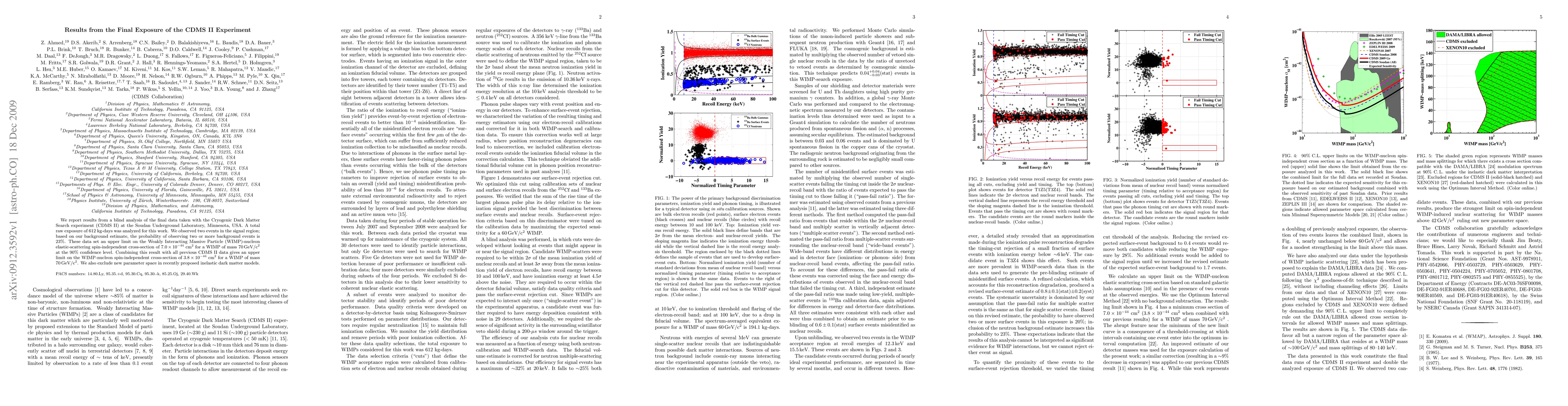 The CDMS II experiment at the Soudan Underground Laboratory reported results from a final blind analysis with a 612 kg-days exposure, observing two events in the signal region. This data set an upper limit on the WIMP-nucleon elastic-scattering spin-independent cross-section at 90% confidence level, improving previous constraints.