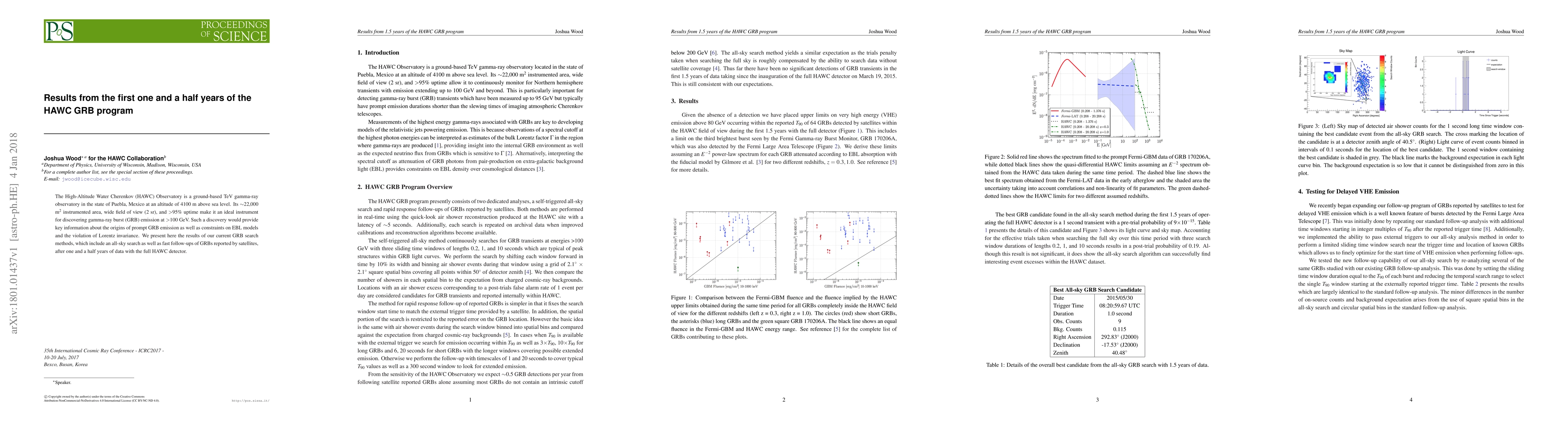 The High-Altitude Water Cherenkov (HAWC) Observatory is a ground-based TeV gamma-ray observatory in the state of Puebla, Mexico at an altitude of 4100 m above sea level. Its $\sim$22,000 m$^2$ instrumented area, wide field of view (2 sr), and $>$95% uptime make it an ideal instrument for discovering gamma-ray burst (GRB) emission at $>$100 GeV. Such a discovery would provide key information about the origins of prompt GRB emission as well as constraints on EBL models and the violation of Lorentz invariance. We present here the results of our current GRB search methods, which include an all-sky search as well as fast follow-ups of GRBs reported by satellites, after one and a half years of data with the full HAWC detector.