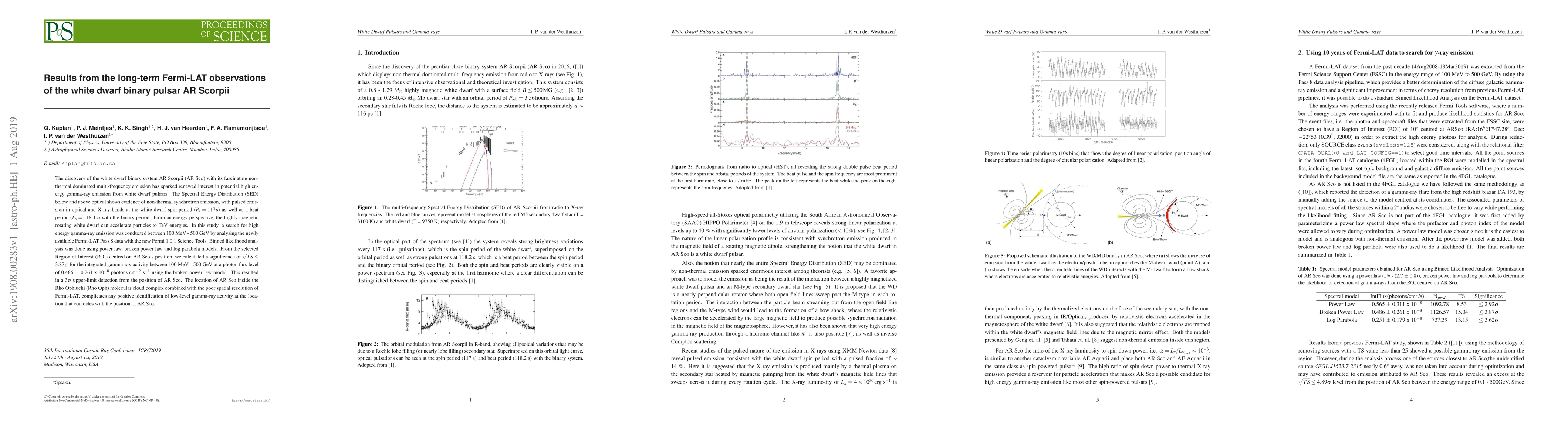 The Fermi-LAT telescope has detected a 3-sigma upper limit of gamma-ray emission from white dwarf pulsar AR Scorpii, with a photon flux level of 0.486 x 10^-8 photons cm^-2 s^-1.