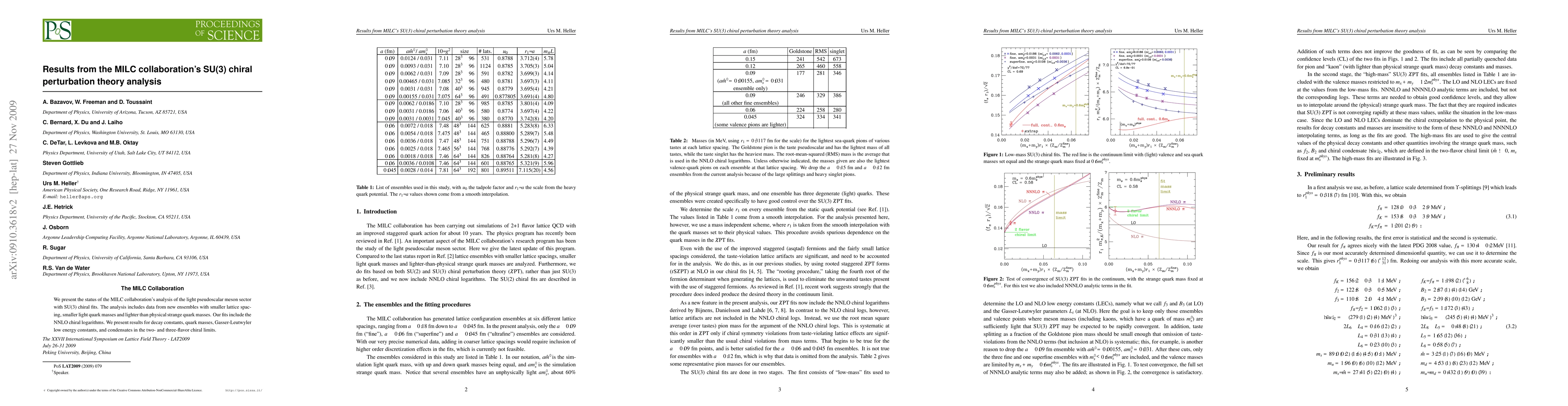 We present the status of the MILC collaboration's analysis of the light pseudoscalar meson sector with SU(3) chiral fits. The analysis includes data from new ensembles with smaller lattice spacing, smaller light quark masses and lighter than physical strange quark masses. Our fits include the NNLO chiral logarithms. We present results for decay constants, quark masses, Gasser-Leutwyler low energy constants, and condensates in the two- and three-flavor chiral limits.