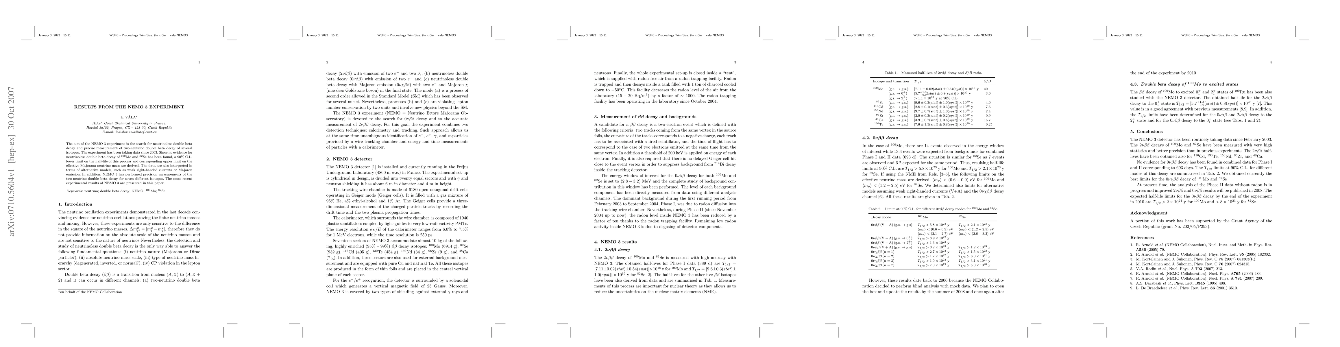 The NEMO 3 experiment aims to detect neutrinoless double beta decay and measure two-neutrino double beta decay in various isotopes. No evidence for neutrinoless double beta decay in Mo100 and Se82 was found, leading to a 90% confidence limit on its half-life and an upper limit on the effective Majorana neutrino mass.