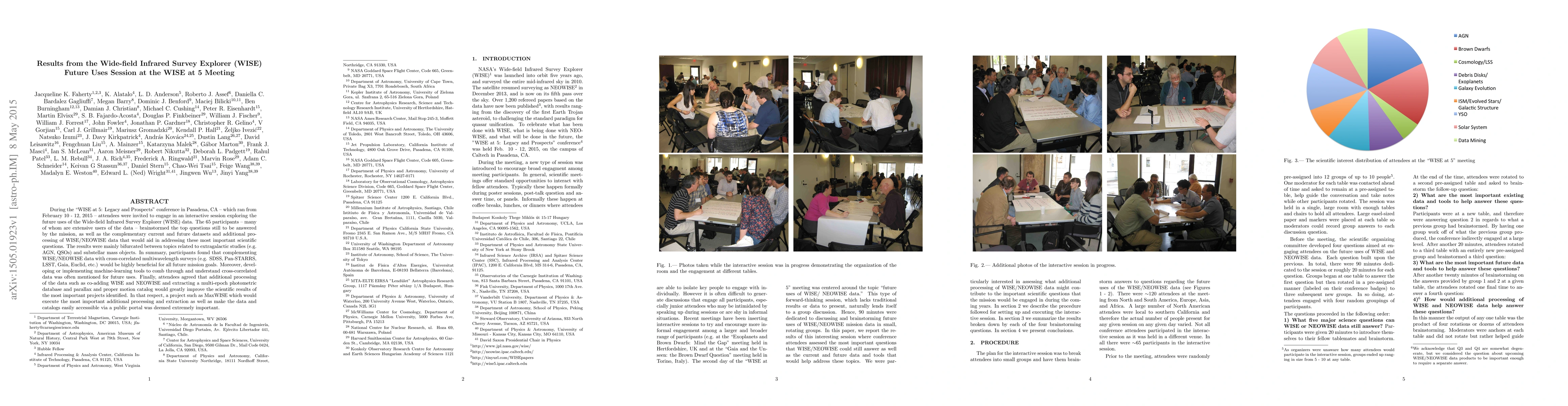 The "WISE at 5: Legacy and Prospects" conference explored future uses of WISE data, focusing on extragalactic studies and substellar objects. Attendees emphasized the need for multiwavelength cross-correlations and machine-learning tools, along with additional data processing and the MaxWISE project to enhance scientific outcomes.