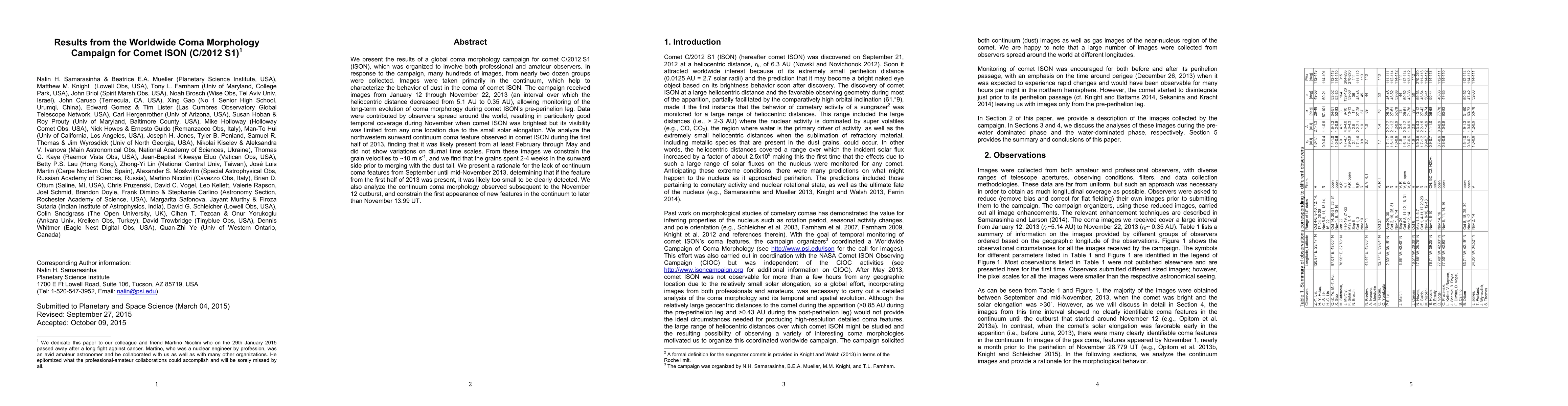 We present the results of a global coma morphology campaign for comet C/2012 S1 (ISON), which was organized to involve both professional and amateur observers. In response to the campaign, many hundreds of images, from nearly two dozen groups were collected. Images were taken primarily in the continuum, which help to characterize the behavior of dust in the coma of comet ISON. The campaign received images from January 12 through November 22, 2013 (an interval over which the heliocentric distance decreased from 5.1 AU to 0.35 AU), allowing monitoring of the long-term evolution of coma morphology during the pre-perihelion leg of comet ISON. Data were contributed by observers spread around the world, resulting in particularly good temporal coverage during November when comet ISON was brightest but its visibility was limited from any one location due to the small solar elongation. We analyze the northwestern sunward continuum coma feature observed in comet ISON during the first half of 2013, finding that it was likely present from at least February through May and did not show variations on diurnal time scales. From these images we constrain the grain velocities to ~10 m/s, and we find that the grains spent 2-4 weeks in the sunward side prior to merging with the dust tail. We present a rationale for the lack of continuum coma features from September until mid-November 2013, determining that if the feature from the first half of 2013 was present, it was likely too small to be clearly detected. We also analyze the continuum coma morphology observed subsequent to the November 12 outburst, and constrain the first appearance of new features in the continuum to later than November 13.99 UT.