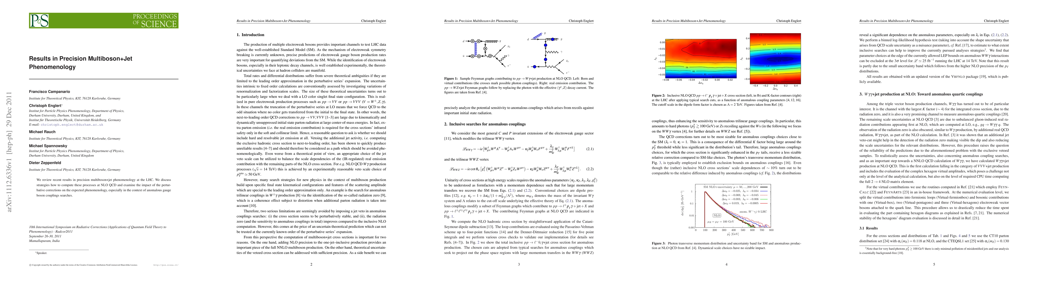 Recent LHC results show promise in precision multiboson+jet phenomenology, with strategies for NLO QCD computations offering insights into anomalous gauge boson couplings searches.