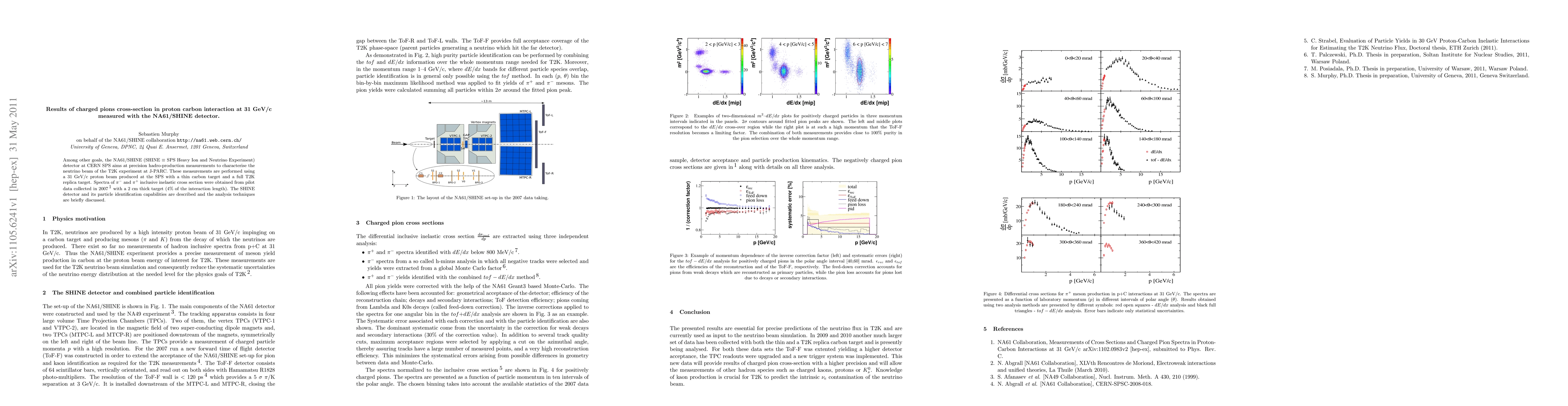 The NA61/SHINE detector at CERN SPS measured the charged pion cross-section in proton-carbon interactions at 31 GeV/c to support the neutrino beam characterization for the T2K experiment. The study utilized pilot data from 2007 with a 2 cm thick carbon target and detailed the detector's capabilities and analysis techniques.