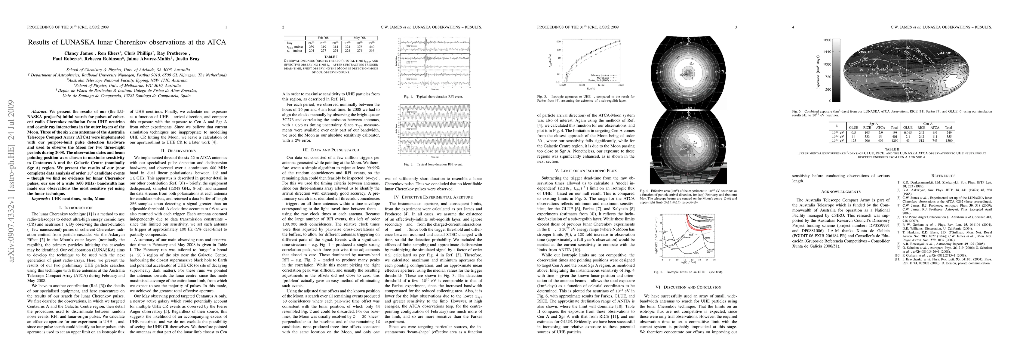 The lunar Cherenkov technique is a method to use radio-telescopes to detect ultra-high energy cosmic rays (CR) and neutrinos ($\nu$). By observing the short-duration ($\sim$few nanosecond) pulses of coherent Cherenkov radiation emitted from particle cascades via the Askaryan Effect in the Moon's outer layers (nominally the regolith), the primary particles initiating the cascades may be identified. Our collaboration (LUNASKA) aims to develop the technique to be used with the next generation of giant radio-arrays. Here, we present the results of our two preliminary UHE particle searches using this technique with three antennas at the Australia Telescope Compact Array (ATCA) during February and May 2008.