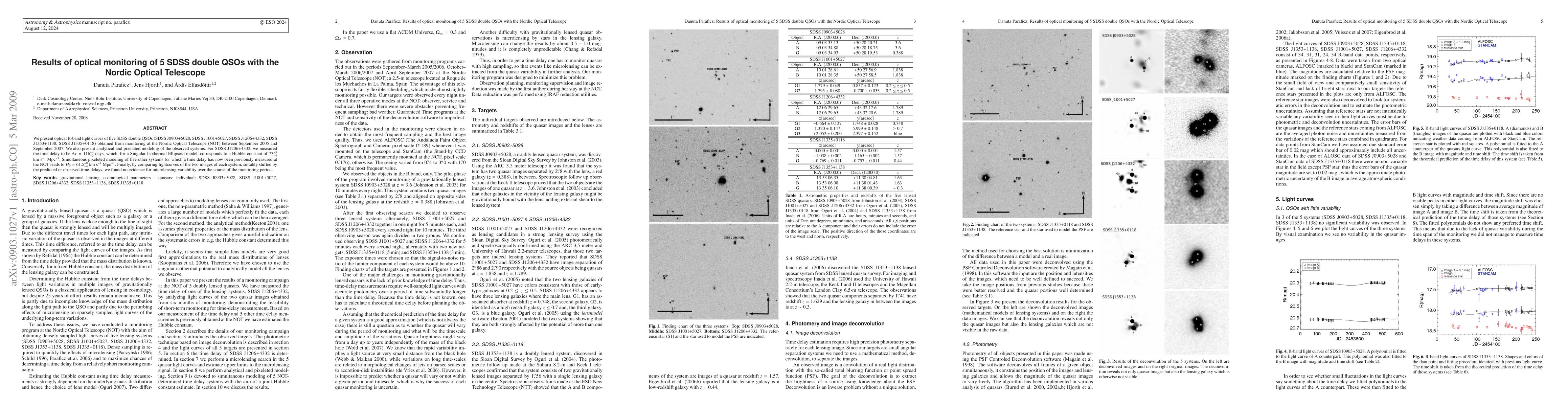 This study presents optical R-band light curves of five SDSS double quasars monitored with the Nordic Optical Telescope from 2005 to 2007, including modeling results. The time delay for SDSS J1206+4332 was measured to be 116 days, yielding a Hubble constant of 73 km/s/Mpc.