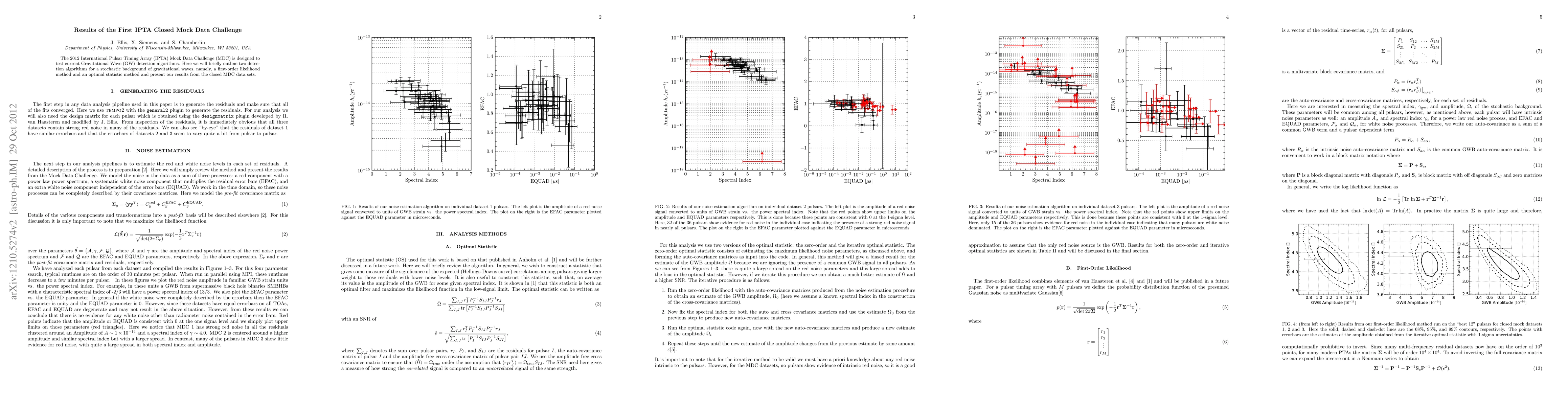 The 2012 IPTA Mock Data Challenge evaluated two gravitational wave detection algorithms: a first-order likelihood method and an optimal statistic method, using closed data sets to test their effectiveness. Results from these algorithms were presented to assess their performance.