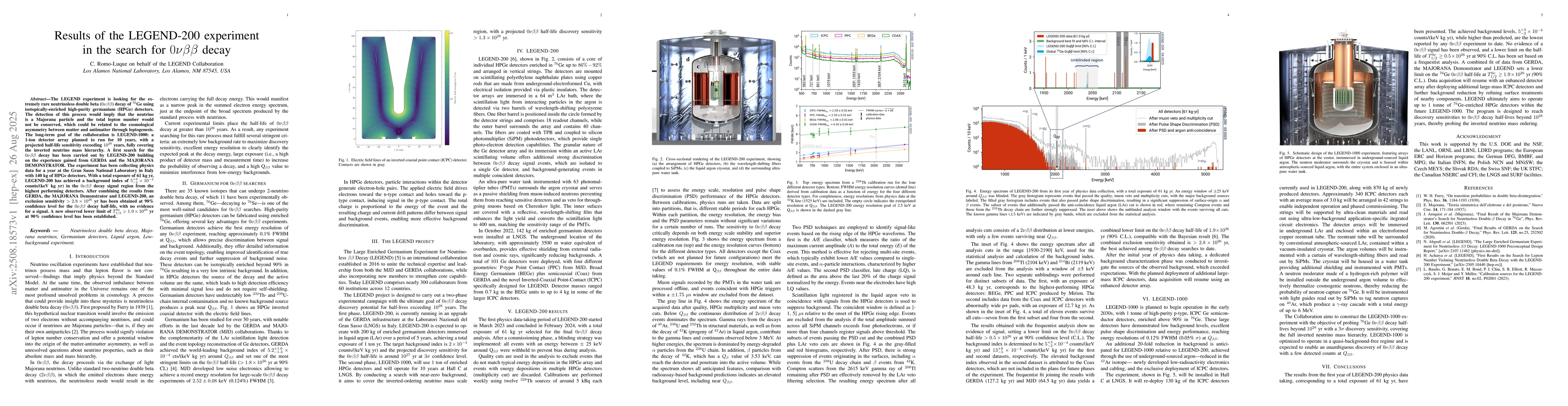The LEGEND experiment is looking for the extremely rare neutrinoless double beta ($0\nu\beta\beta$) decay of $^{76}$Ge using isotopically-enriched high-purity germanium (HPGe) detectors. The detection of this process would imply that the neutrino is a Majorana particle and the total lepton number would not be conserved, which could be related to the cosmological asymmetry between matter and antimatter through leptogenesis. The long-term goal of the collaboration is LEGEND-1000: a 1-ton detector array planned to run for 10 years, with a projected half-life sensitivity exceeding $10^{28}$ years, fully covering the inverted neutrino mass hierarchy. A first search for the $0\nu\beta\beta$ decay has been carried out by LEGEND-200 building on the experience gained from GERDA and the MAJORANA DEMONSTRATOR. The experiment has been collecting physics data for a year at the Gran Sasso National Laboratory in Italy with 140 kg of HPGe detectors. With a total exposure of 61 kg yr, LEGEND-200 has achieved a background index of $5^{+3}_{-2}\times10^{-4}$ counts/(keV kg yr) in the $0\nu\beta\beta$ decay signal region from the highest performing detectors. After combining the results from GERDA, the MAJORANA Demonstrator and LEGEND-200, an exclusion sensitivity $ > 2.8\times10^{26}$ yr has been obtained at 90\% confidence level for the $0\nu\beta\beta$ decay half-life, with no evidence for a signal. A new observed lower limit of $T^{0\nu}_{1/2} > 1.9\times10^{26}$ yr at 90\% confidence level has been established.