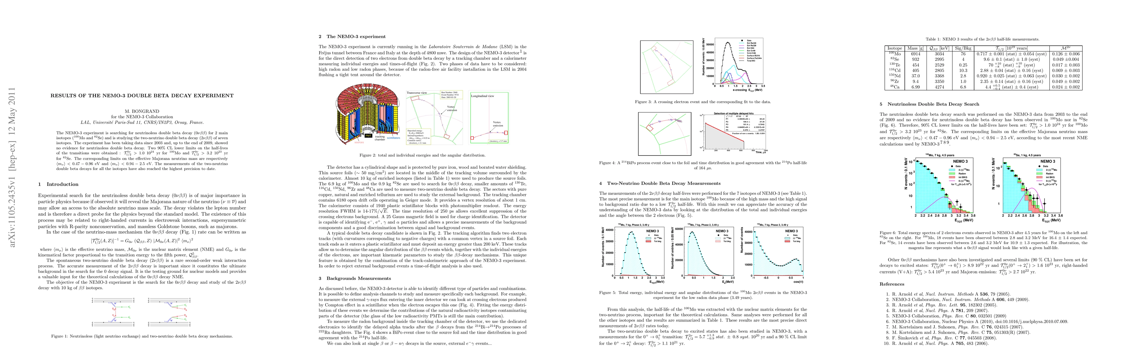 The NEMO-3 experiment found no evidence of neutrinoless double beta decay for isotopes 100Mo and 82Se by the end of 2009, setting lower limits on their half-lives and effective Majorana neutrino masses. It also achieved the highest precision measurements for two-neutrino double beta decay.