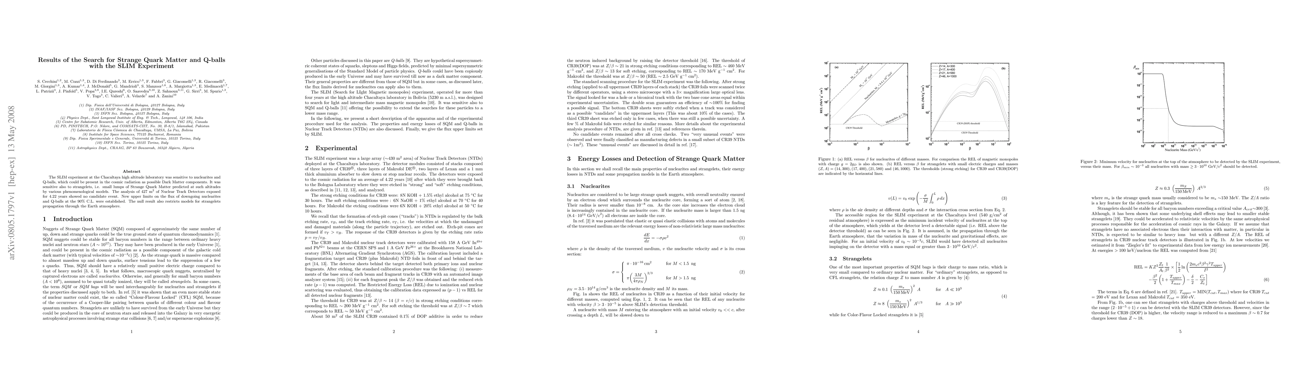 The SLIM experiment at the Chacaltaya high altitude laboratory was sensitive to nuclearites and Q-balls, which could be present in the cosmic radiation as possible Dark Matter components. It was sensitive also to strangelets, i.e. small lumps of Strange Quark Matter predicted at such altitudes by various phenomenological models. The analysis of 427 m^2 of Nuclear Track Detectors exposed for 4.22 years showed no candidate event. New upper limits on the flux of downgoing nuclearites and Q-balls at the 90% C.L. were established. The null result also restricts models for strangelets propagation through the Earth atmosphere.