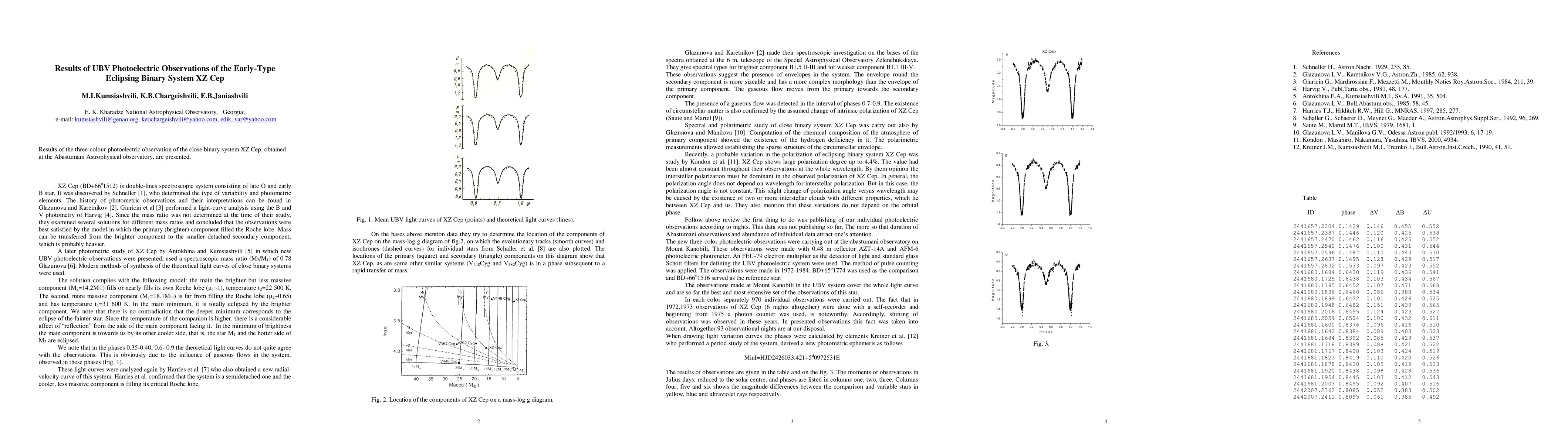 The paper presents UBV photoelectric observations of the early-type eclipsing binary system XZ Cep, conducted at Abastumani Astrophysical observatory, detailing findings on the system's light curves and properties.