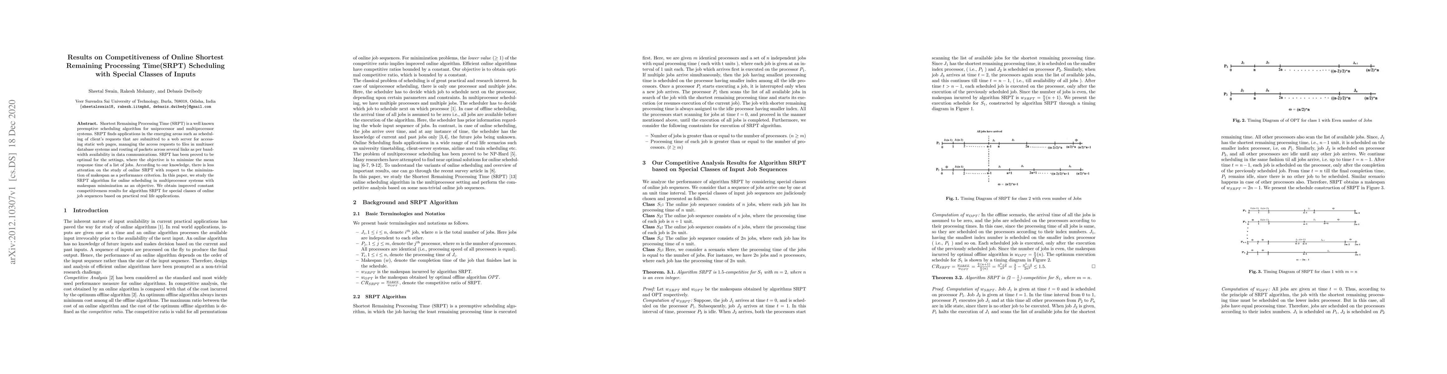 Shortest Remaining Processing Time (SRPT) is a well known preemptive scheduling algorithm for uniprocessor and multiprocessor systems. SRPT finds applications in the emerging areas such as scheduling of client's requests that are submitted to a web server for accessing static web pages, managing the access requests to files in multiuser database systems and routing of packets across several links as per bandwidth availability in data communications. SRPT has been proved to be optimal for the settings, where the objective is to minimize the mean response time of a list of jobs. According to our knowledge, there is less attention on the study of online SRPT with respect to the minimization of makespan as a performance criterion. In this paper, we study the SRPT algorithm for online scheduling in multiprocessor systems with makespan minimization as an objective. We obtain improved constant competitiveness results for algorithm SRPT for special classes of online job sequences based on practical real life applications.