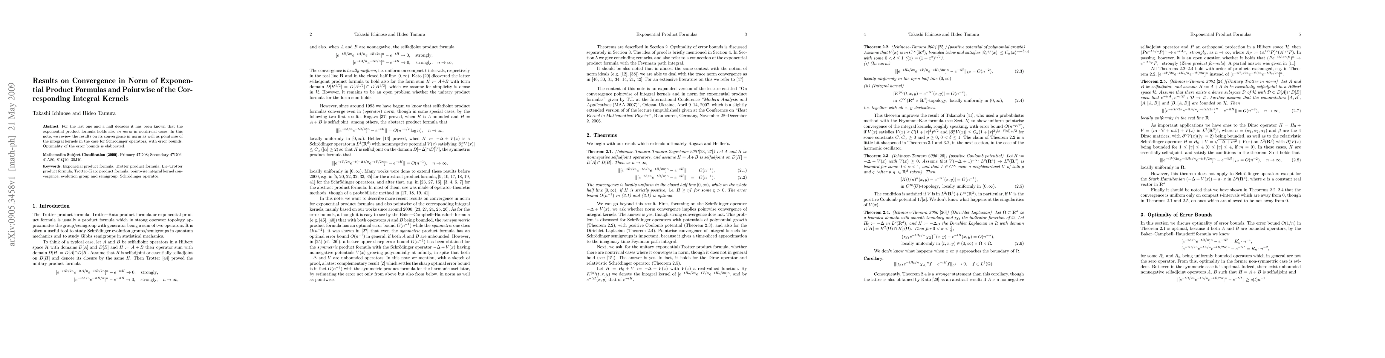 For the last one and a half decades it has been known that the exponential product formula holds also {\it in norm} in nontrivial cases. In this note, we review the results on its convergence in norm as well as pointwise of the integral kernels in the case for Schr\"odinger operators, with error bounds. Optimality of the error bounds is elaborated.