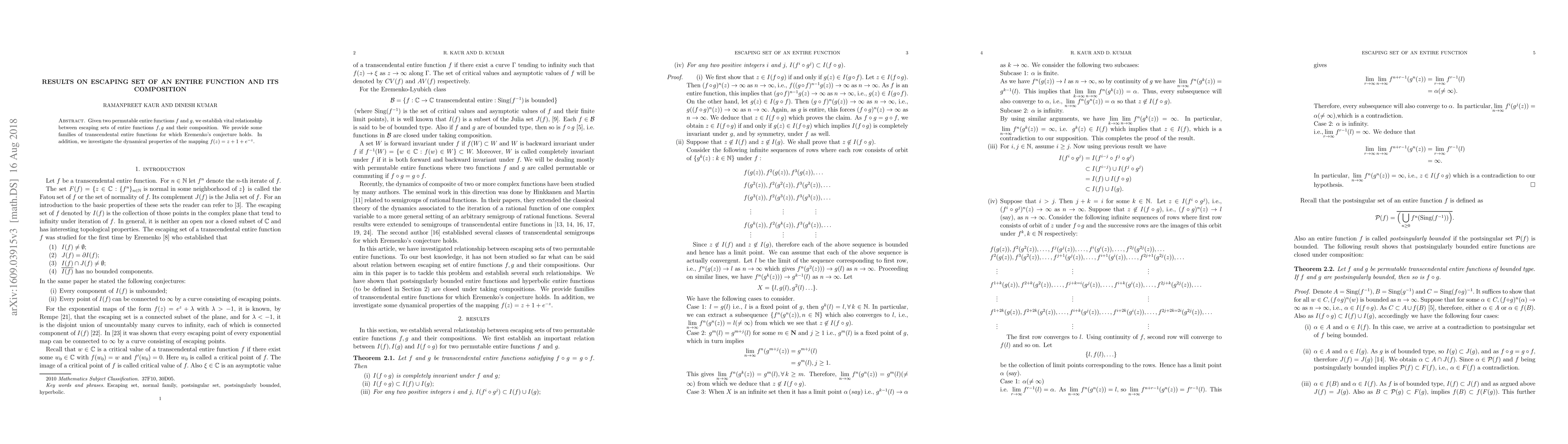 This paper establishes a significant relationship between the escaping sets of permutable entire functions and their compositions, confirming Eremenko's conjecture for certain transcendental entire functions. It also examines the dynamical properties of the specific function $f(z) = z + 1 + e^{-z}$.