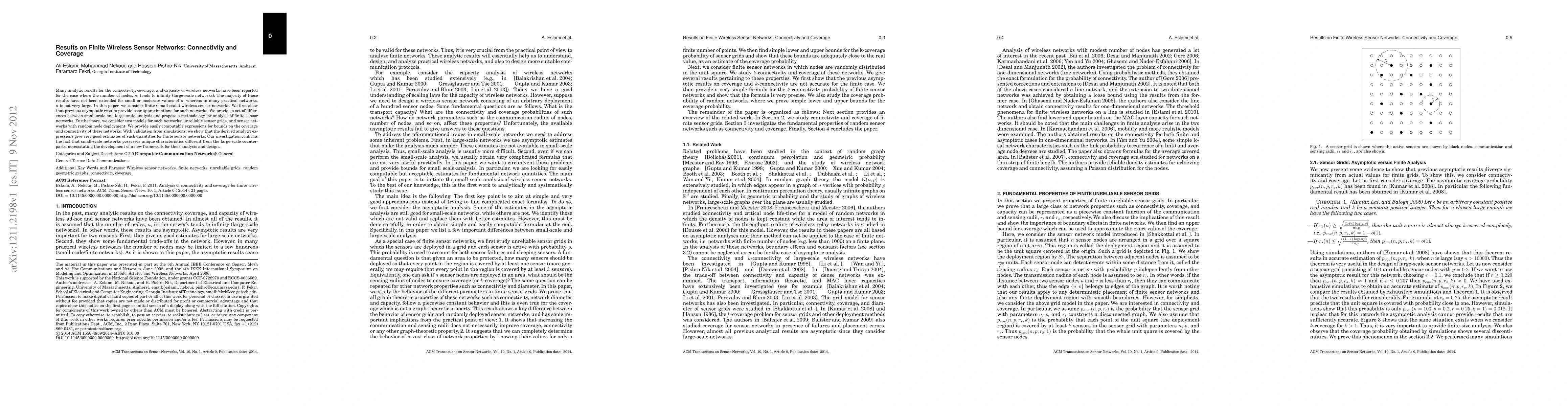 This paper examines the differences in connectivity and coverage between small-scale and large-scale wireless sensor networks, demonstrating that asymptotic results for large networks poorly approximate small networks. It proposes a new framework for analyzing finite networks and provides computable expressions for coverage and connectivity bounds validated by simulations.