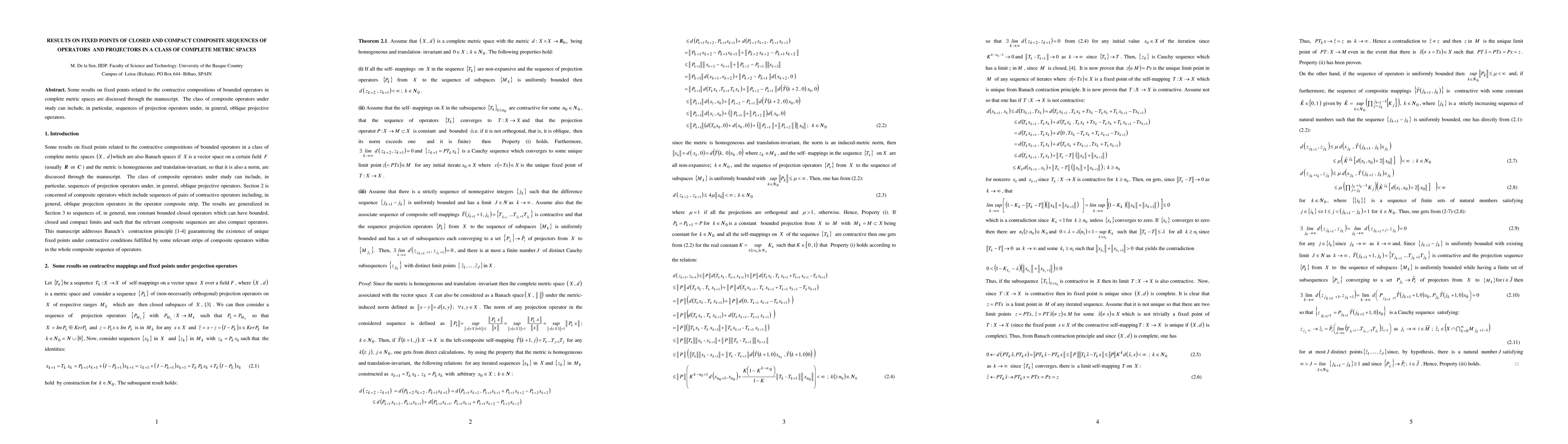 Summary: This paper explores fixed points for composite sequences of bounded operators and projectors in complete metric spaces, focusing on contractive compositions and including sequences of oblique projection operators. The results provide insights into the behavior of these operators within the specified metric space framework.