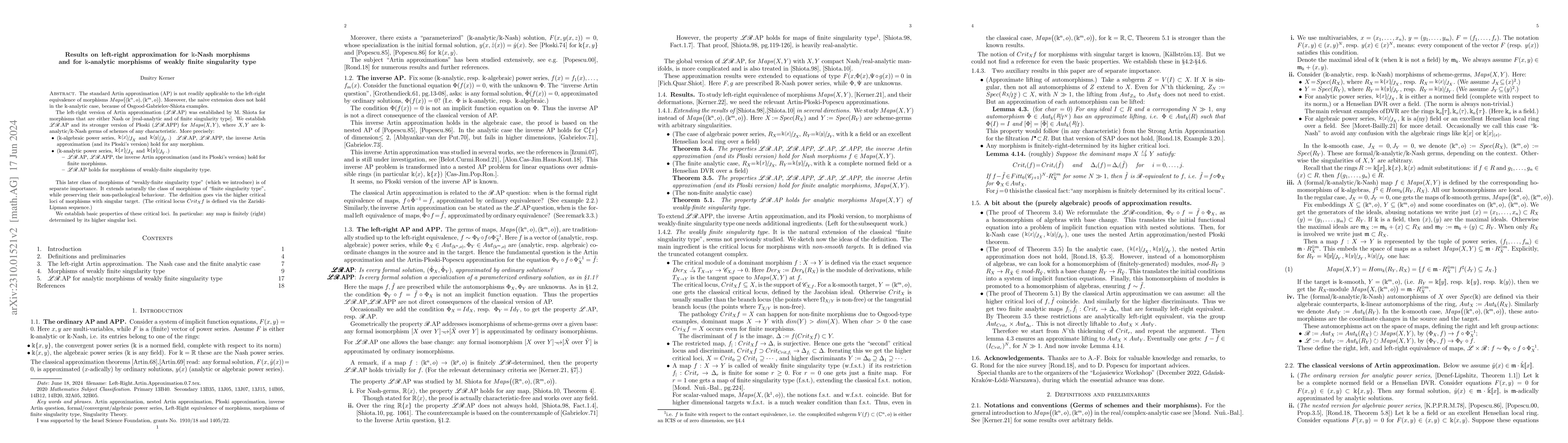 This paper establishes the left-right version of Artin's approximation (LRAP) and its stronger form (LRAPP) for k-Nash and k-analytic morphisms, including those with weakly finite singularity type. It extends previous results to broader classes of morphisms and defines higher critical loci for analytic morphisms.
