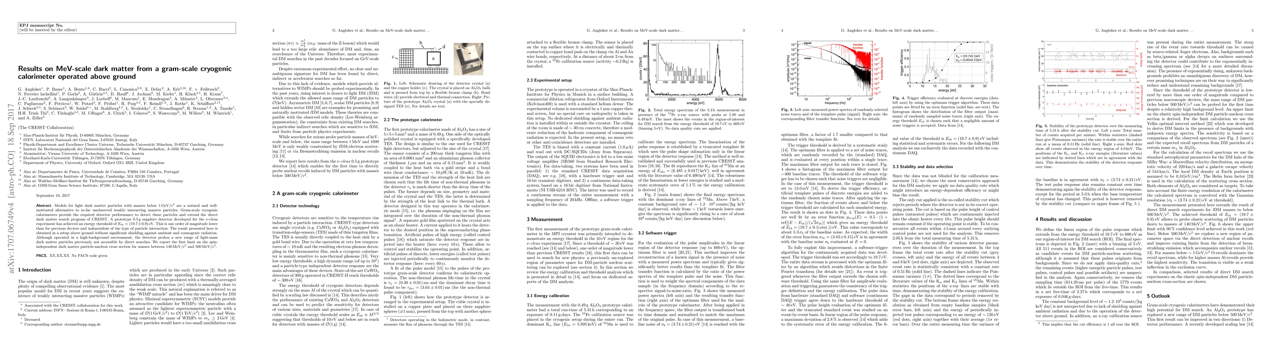 This paper reports on the successful operation of a gram-scale cryogenic calorimeter above ground, achieving a significantly lower energy threshold, enabling the detection of MeV-scale dark matter particles. The prototype sapphire detector set a new limit on the spin-independent dark matter particle-nucleon cross section for masses between 140 MeV/c² and 500 MeV/c².