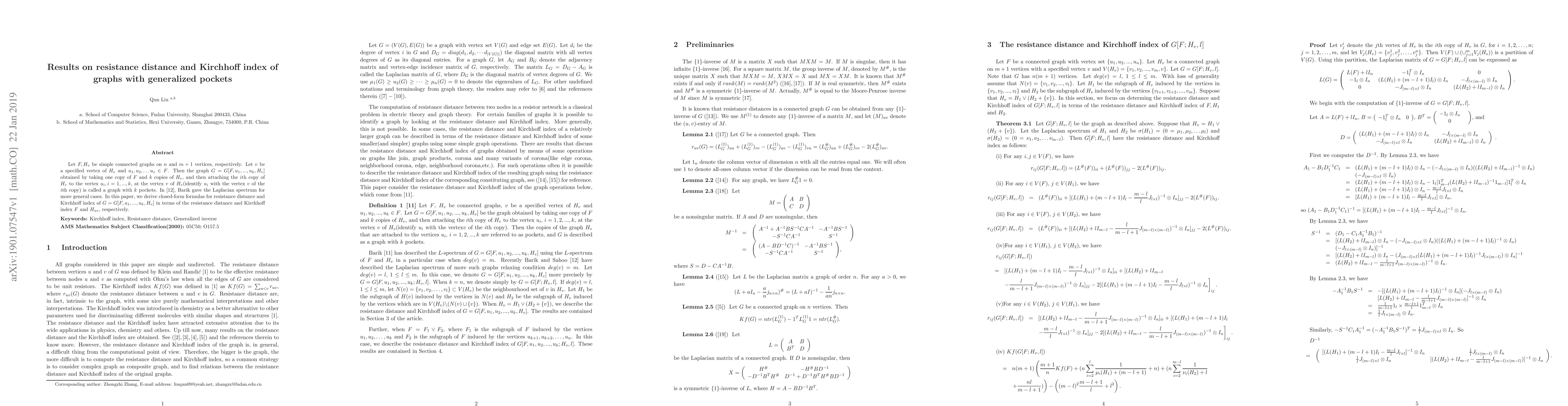 Summary: This paper provides closed-form expressions for the resistance distance and Kirchhoff index of graphs with generalized pockets, derived from the corresponding values in their factor graphs. The results enhance the understanding of electrical network properties in complex graph structures.