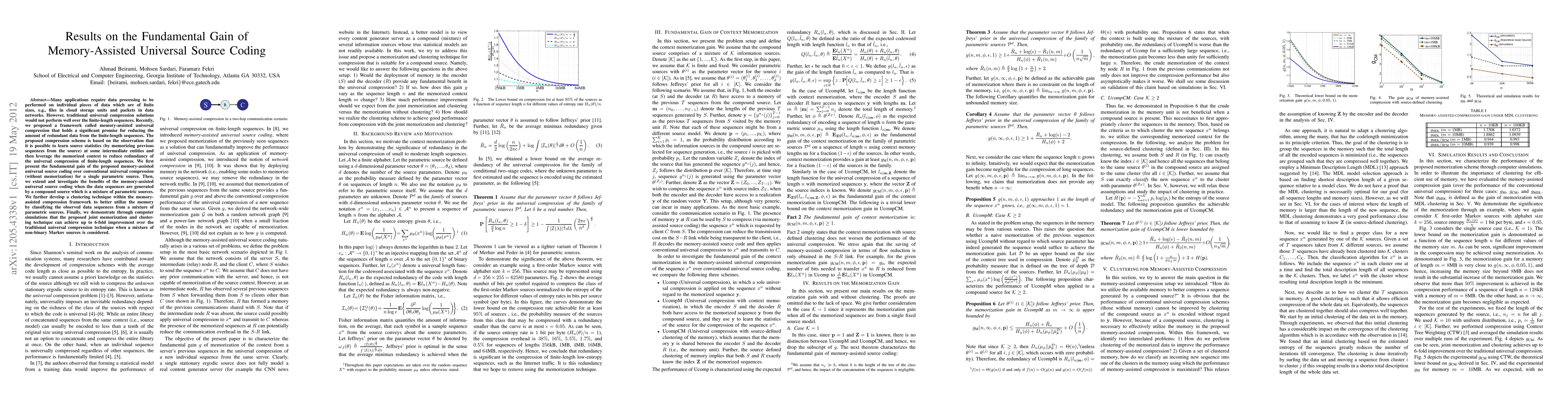 This paper investigates the fundamental gain of memory-assisted universal source coding over conventional methods, demonstrating significant improvements in compressing finite-length sequences. The proposed framework leverages memorization and clustering techniques to achieve up to a 6-fold improvement in compression efficiency for mixed parametric sources.