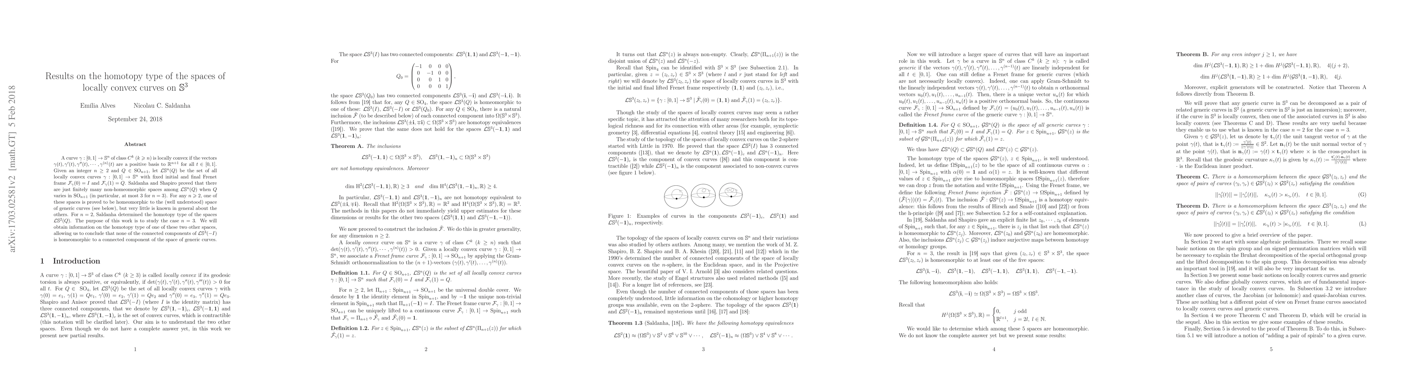 A curve $\gamma: [0,1] \rightarrow S^n$ of class $C^k$ ($k \geqslant n$) is locally convex if the vectors $\gamma(t), \gamma'(t), \gamma"(t), \cdots, \gamma^{(n)}(t)$ are a positive orthonormal basis to $R^{n+1}$ for all $t \in [0,1]$. Given an integer $n \geq 2$ and $Q \in SO_{n+1}$, let $LS^n(Q)$ be the set of all locally convex curves $\gamma: [0,1] \rightarrow S^n$ with fixed initial and final Frenet frame $F_\gamma(0)=I$ and $F_\gamma(1)=Q$. Saldanha and Shapiro proved that there are just finitely many non-homeomorphic spaces among $LS^n(Q)$ when $Q$ varies in $SO_{n+1}$ (in particular, at most $3$ for $n=3$). For any $n \geqslant 2$, the homotopy type of one of these spaces is well-known, but not of the others. For $n=2$, Saldanha determined the homotopy type of the spaces $LS^2(Q)$. The purpose of this work is to study the case $n=3$. We will obtain information on the homotopy type of one of these $2$ other spaces, allowing us to conclude that its connected components are not homeomorphic to the connected components of the known space.