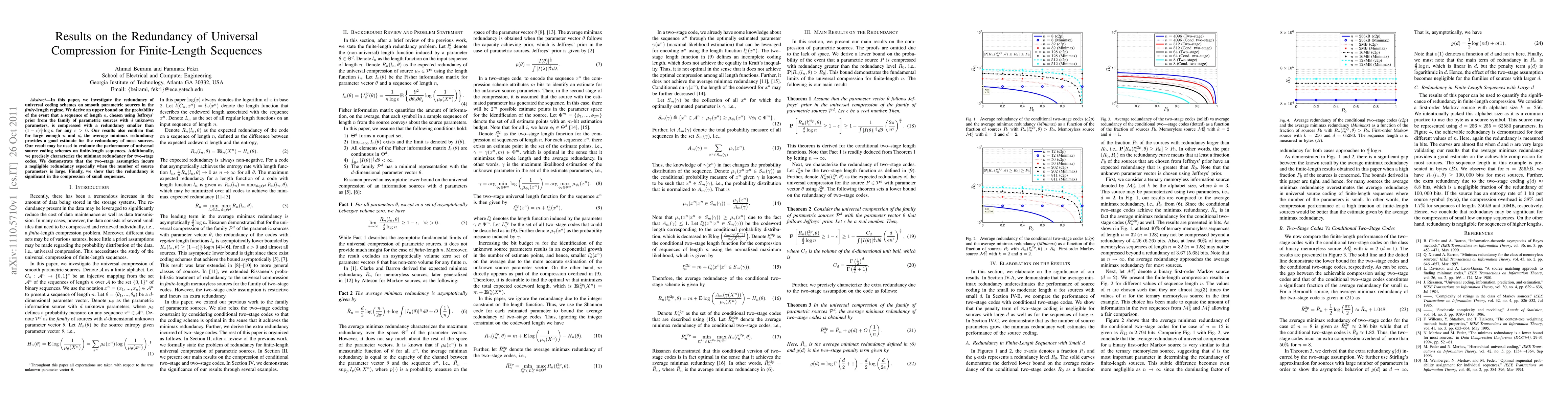 In this paper, we investigate the redundancy of universal coding schemes on smooth parametric sources in the finite-length regime. We derive an upper bound on the probability of the event that a sequence of length $n$, chosen using Jeffreys' prior from the family of parametric sources with $d$ unknown parameters, is compressed with a redundancy smaller than $(1-\epsilon)\frac{d}{2}\log n$ for any $\epsilon>0$. Our results also confirm that for large enough $n$ and $d$, the average minimax redundancy provides a good estimate for the redundancy of most sources. Our result may be used to evaluate the performance of universal source coding schemes on finite-length sequences. Additionally, we precisely characterize the minimax redundancy for two--stage codes. We demonstrate that the two--stage assumption incurs a negligible redundancy especially when the number of source parameters is large. Finally, we show that the redundancy is significant in the compression of small sequences.