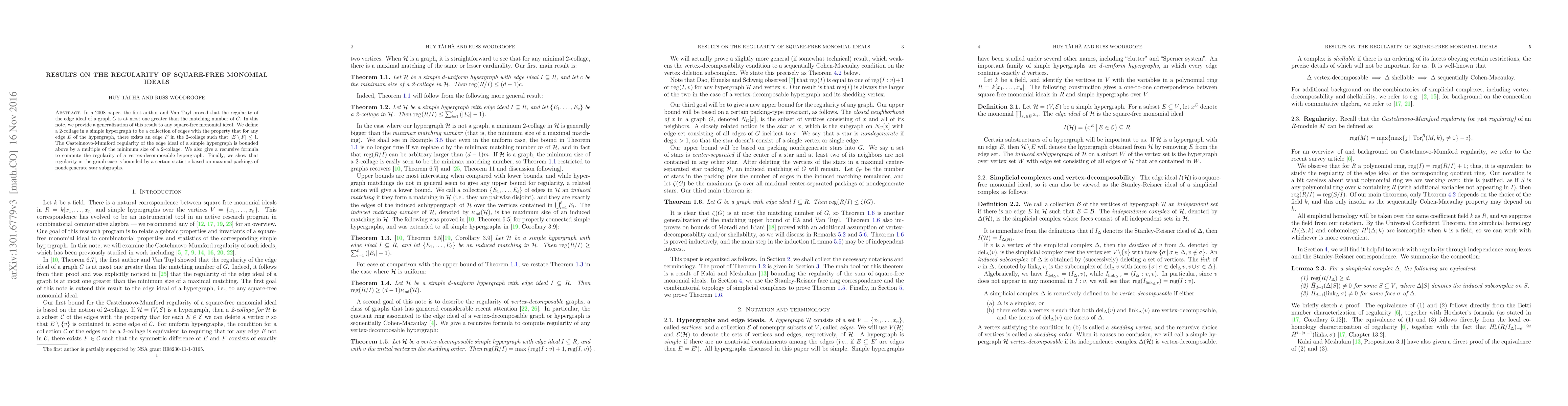 In a 2008 paper, the first author and Van Tuyl proved that the regularity of the edge ideal of a graph G is at most one greater than the matching number of G. In this note, we provide a generalization of this result to any square-free monomial ideal. We define a 2-collage in a simple hypergraph to be a collection of edges with the property that for any edge E of the hypergraph, there exists an edge F in the collage such that |E \ F| < 2. The Castelnuovo-Mumford regularity of the edge ideal of a simple hypergraph is bounded above by a multiple of the minimum size of a 2-collage. We also give a recursive formula to compute the regularity of a vertex-decomposable hypergraph. Finally, we show that regularity in the graph case is bounded by a certain statistic based on maximal packings of nondegenerate star subgraphs.