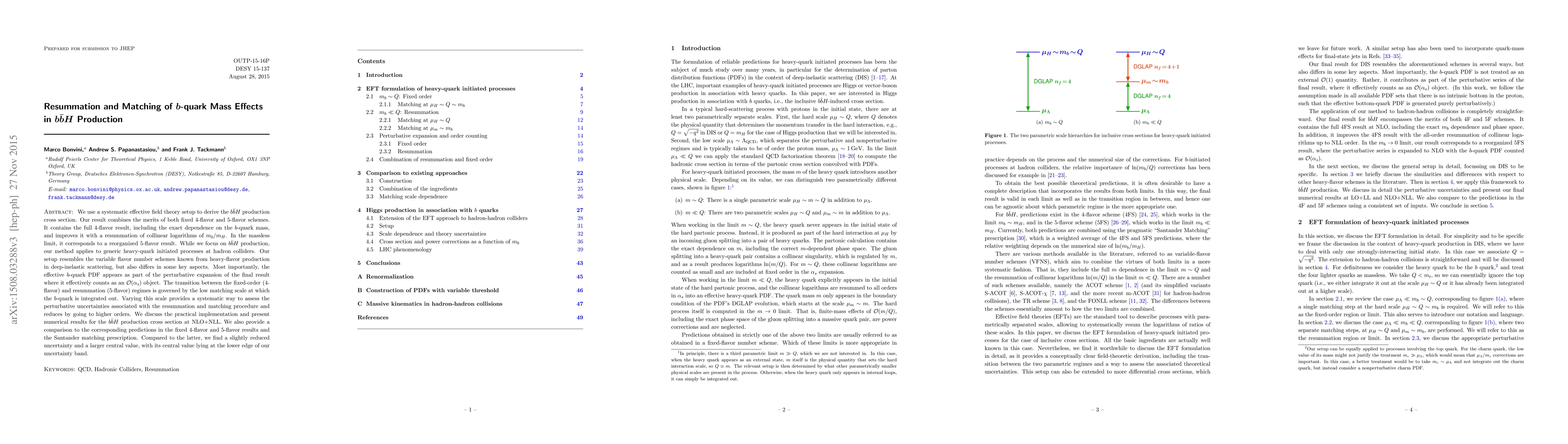 We use a systematic effective field theory setup to derive the $b\bar{b}H$ production cross section. Our result combines the merits of both fixed 4-flavor and 5-flavor schemes. It contains the full 4-flavor result, including the exact dependence on the $b$-quark mass, and improves it with a resummation of collinear logarithms of $m_b/m_H$. In the massless limit, it corresponds to a reorganized 5-flavor result. While we focus on $b\bar{b}H$ production, our method applies to generic heavy-quark initiated processes at hadron colliders. Our setup resembles the variable flavor number schemes known from heavy-flavor production in deep-inelastic scattering, but also differs in some key aspects. Most importantly, the effective $b$-quark PDF appears as part of the perturbative expansion of the final result where it effectively counts as an $O(\alpha_s)$ object. The transition between the fixed-order (4-flavor) and resummation (5-flavor) regimes is governed by the low matching scale at which the $b$-quark is integrated out. Varying this scale provides a systematic way to assess the perturbative uncertainties associated with the resummation and matching procedure and reduces by going to higher orders. We discuss the practical implementation and present numerical results for the $b\bar{b}H$ production cross section at NLO+NLL. We also provide a comparison to the corresponding predictions in the fixed 4-flavor and 5-flavor results and the Santander matching prescription. Compared to the latter, we find a slightly reduced uncertainty and a larger central value, with its central value lying at the lower edge of our uncertainty band.