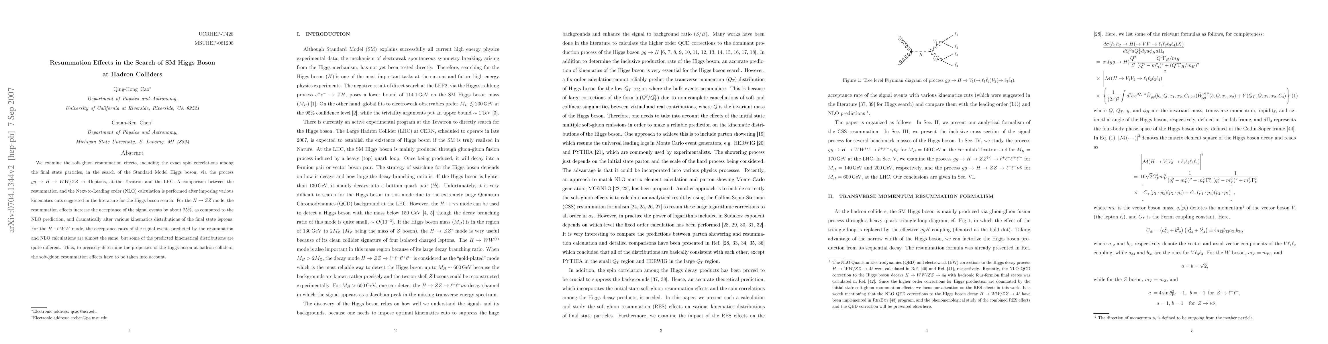 This paper investigates the impact of soft-gluon resummation effects on the search for the Standard Model Higgs boson via the $gg\to H\to WW/ZZ \to 4$ leptons process at the Tevatron and LHC. It finds that resummation significantly enhances signal acceptance and alters kinematic distributions for the $H\to ZZ$ mode, but has minimal effect on acceptance rates for $H\to WW$ while changing kinematic distributions.