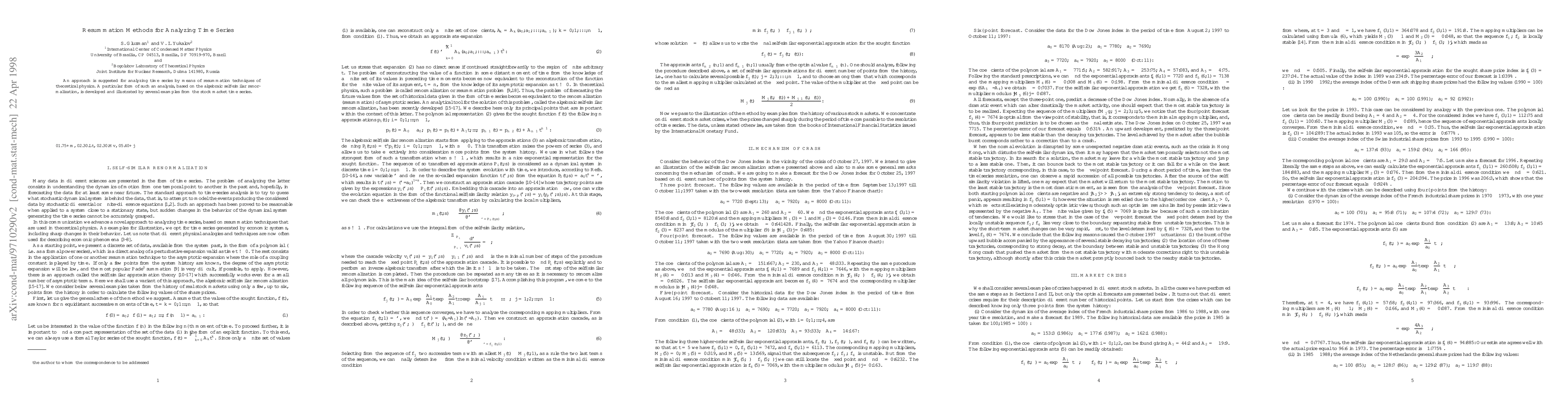 An approach is suggested for analyzing time series by means of resummation techniques of theoretical physics. A particular form of such an analysis, based on the algebraic self-similar renormalization, is developed and illustrated by several examples from the stock market time series.