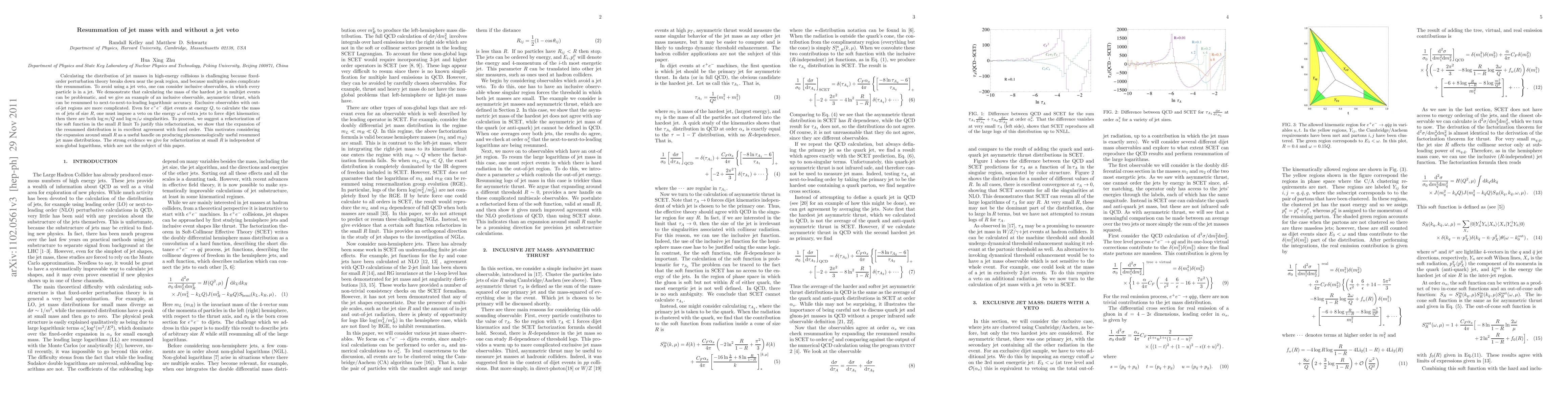 This paper addresses the challenge of calculating jet masses in high-energy collisions, demonstrating that fixed-order perturbation theory fails near the peak region. It proposes an inclusive observable, asymmetric thrust, resummed to next-to-next-to-leading logarithmic accuracy, and suggests a refactorization of the soft function for exclusive observables with jet vetoes to handle complex singularities.