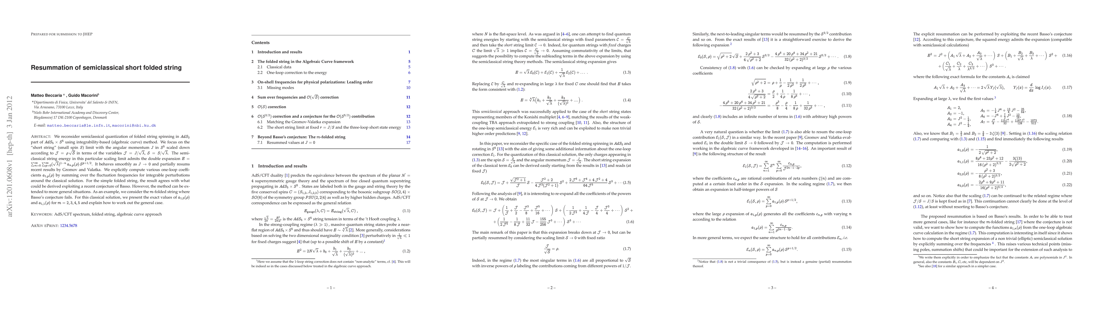 We reconsider semiclassical quantization of folded string spinning in AdS_3 part of AdS_5 X S^5 using integrability-based (algebraic curve) method. We focus on the "short string" (small spin S) limit with the angular momentum J in S^5 scaled down according to \cal J = rho \sqrt \cal S in terms of the variables \cal J = J/\sqrt\lambda, \cal S = S/\sqrt\lambda. The semiclassical string energy in this particular scaling limit admits the double expansion E = \sum_{n=0}^{\infty}\sum_{p=0}^{\infty} (\sqrt\lambda)^{1-n}\,a_{n,p}(rho)\, \cal S^{p+1/2}. It behaves smoothly as J -> 0 and partially resums recent results by Gromov and Valatka. We explicitly compute various one-loop coefficients a_{1,p}(rho) by summing over the fluctuation frequencies for integrable perturbations around the classical solution. For the simple folded string, the result agrees with what could be derived exploiting a recent conjecture of Basso. However, the method can be extended to more general situations. As an example, we consider the m-folded string where Basso's conjecture fails. For this classical solution, we present the exact values of a_{1,0}(rho) and a_{1,1}(rho) for m=2, 3, 4, 5 and explain how to work out the general case.