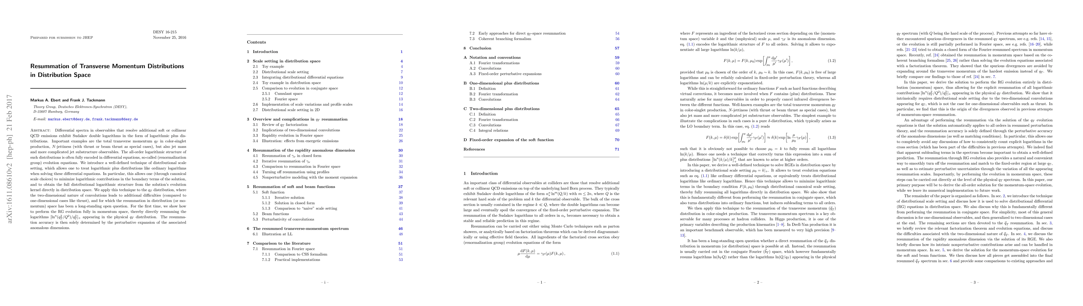 Differential spectra in observables that resolve additional soft or collinear QCD emissions exhibit Sudakov double logarithms in the form of logarithmic plus distributions. Important examples are the total transverse momentum $q_T$ in color-singlet production, N-jettiness (with thrust or beam thrust as special cases), but also jet mass and more complicated jet substructure observables. The all-order logarithmic structure of such distributions is often fully encoded in differential equations, so-called (renormalization group) evolution equations. We introduce a well-defined technique of distributional scale setting, which allows one to treat logarithmic plus distributions like ordinary logarithms when solving these differential equations. In particular, this allows one (through canonical scale choices) to minimize logarithmic contributions in the boundary terms of the solution, and to obtain the full distributional logarithmic structure from the solution's evolution kernel directly in distribution space. We apply this technique to the $q_T$ distribution, where the two-dimensional nature of convolutions leads to additional difficulties (compared to one-dimensional cases like thrust), and for which the resummation in distribution (or momentum) space has been a long-standing open question. For the first time, we show how to perform the RG evolution fully in momentum space, thereby directly resumming the logarithms $[\ln^n(q_T^2/Q^2)/q_T^2]_+$ appearing in the physical $q_T$ distribution. The resummation accuracy is then solely determined by the perturbative expansion of the associated anomalous dimensions.