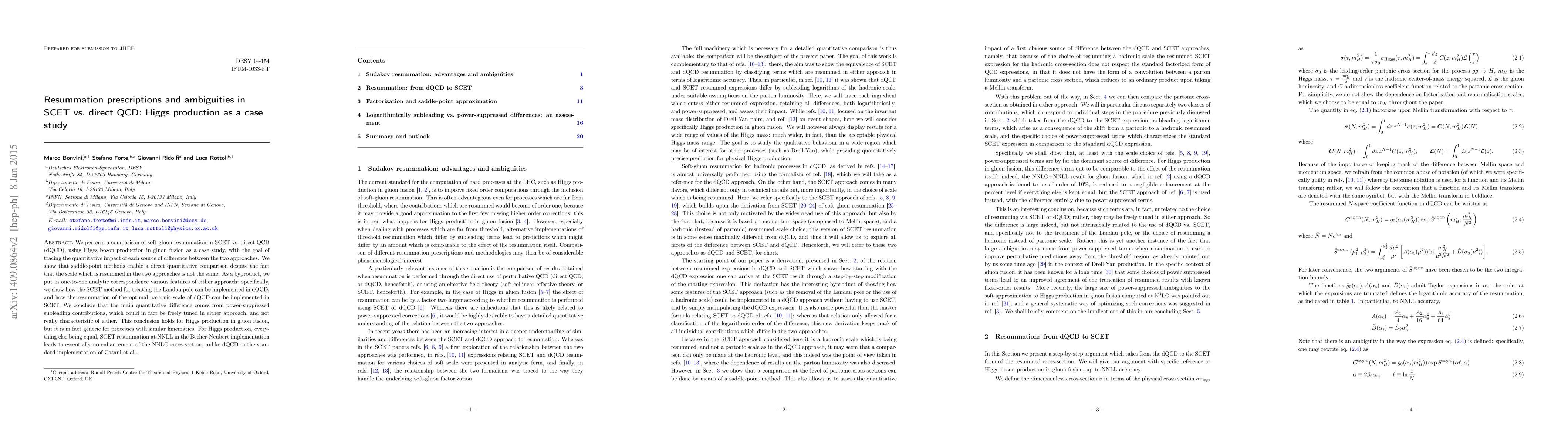 We perform a comparison of soft-gluon resummation in SCET vs. direct QCD (dQCD), using Higgs boson production in gluon fusion as a case study, with the goal of tracing the quantitative impact of each source of difference between the two approaches. We show that saddle-point methods enable a direct quantitative comparison despite the fact that the scale which is resummed in the two approaches is not the same. As a byproduct, we put in one-to-one analytic correspondence various features of either approach: specifically, we show how the SCET method for treating the Landau pole can be implemented in dQCD, and how the resummation of the optimal partonic scale of dQCD can be implemented in SCET. We conclude that the main quantitative difference comes from power-suppressed subleading contributions, which could in fact be freely tuned in either approach, and not really characteristic of either. This conclusion holds for Higgs production in gluon fusion, but it is in fact generic for processes with similar kinematics. For Higgs production, everything else being equal, SCET resummation at NNLL in the Becher-Neubert implementation leads to essentially no enhancement of the NNLO cross-section, unlike dQCD in the standard implementation of Catani et al..