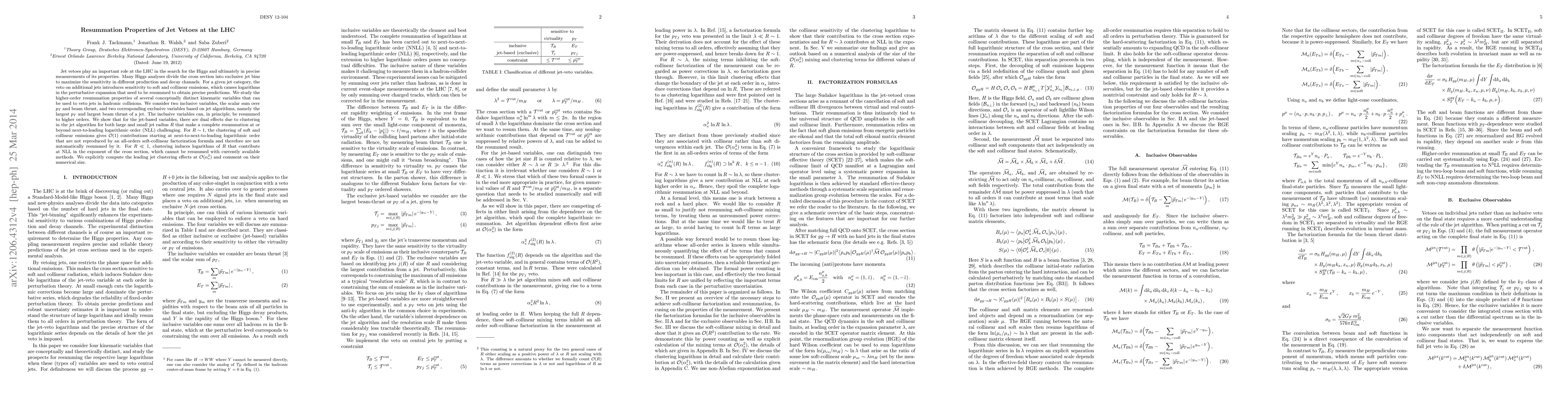 This paper investigates the higher-order resummation properties of jet vetoes used in LHC analyses to search for the Higgs boson. It finds that while inclusive variables like scalar sum over pT and beam thrust can be resummed, exclusive jet-based variables face challenges due to clustering effects that introduce non-resummable contributions at next-to-next-to-leading logarithmic order and logarithms of jet radius R that cannot be resummed with current methods.