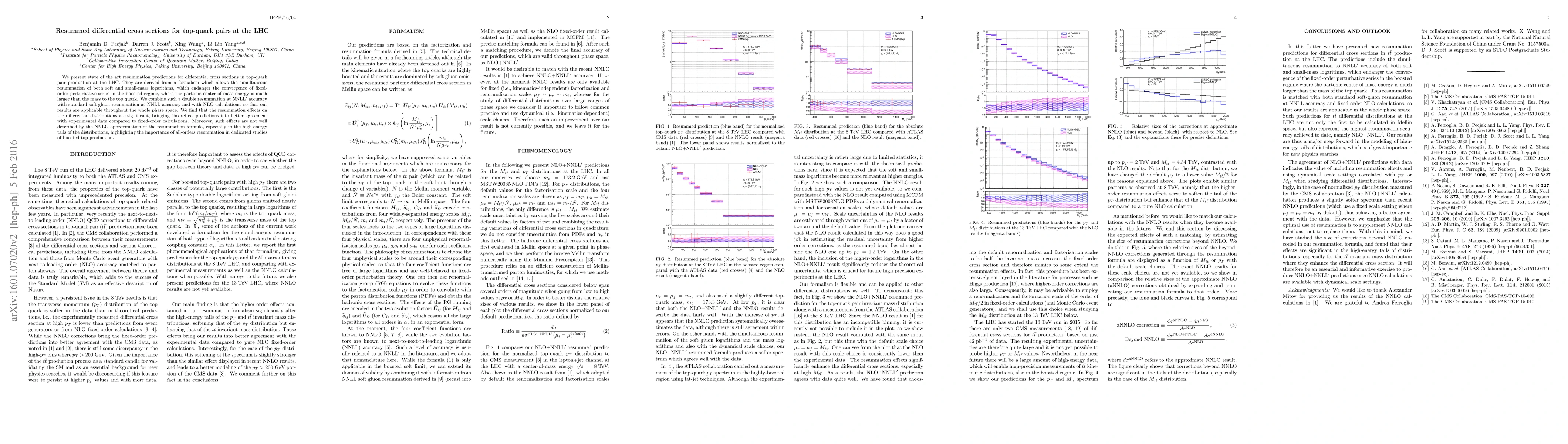 This paper presents advanced resummation predictions for differential cross sections in top-quark pair production at the LHC, combining double resummation at NNLL' accuracy with NLO calculations. The results show significant resummation effects, improving agreement with experimental data and highlighting the necessity of all-order resummation for high-energy distributions.