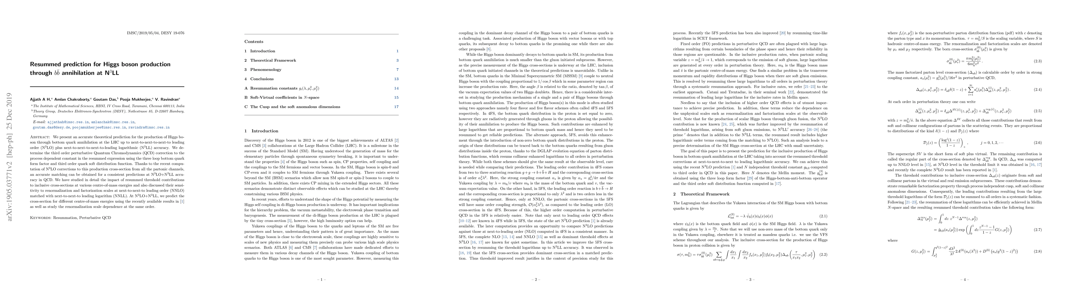This research paper predicts Higgs boson production through bottom quark annihilation at the LHC with high accuracy, including next-to-next-to-next-to leading order (N$^3$LO) and next-to-next-to-next-to-leading logarithmic (N$^3$LL) corrections.