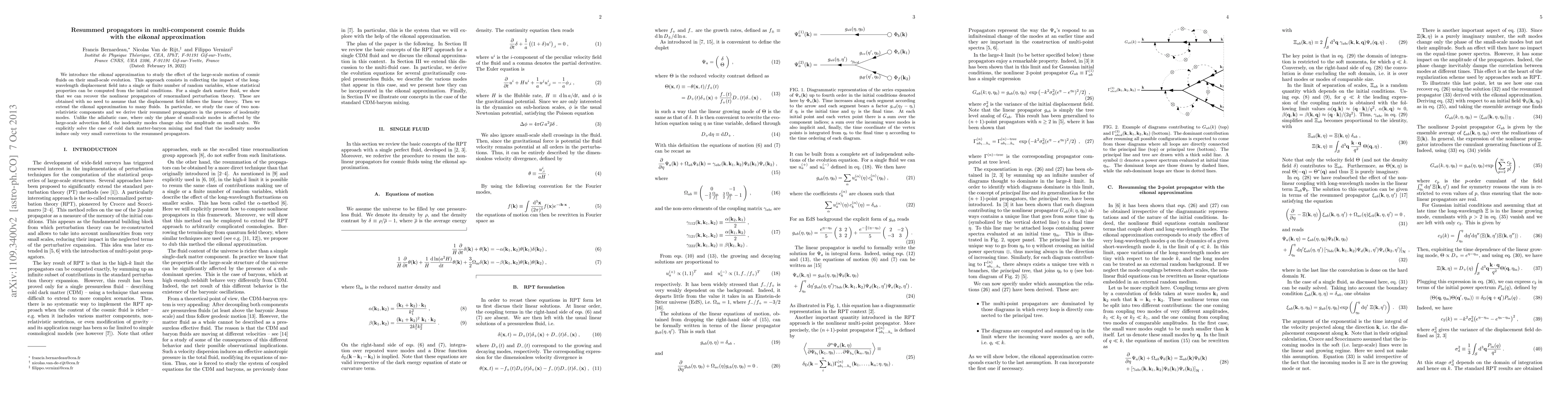 We introduce the eikonal approximation to study the effect of the large-scale motion of cosmic fluids on their small-scale evolution. This approach consists in collecting the impact of the long-wavelength displacement field into a single or finite number of random variables, whose statistical properties can be computed from the initial conditions. For a single dark matter fluid, we show that we can recover the nonlinear propagators of renormalized perturbation theory. These are obtained with no need to assume that the displacement field follows the linear theory. Then we extend the eikonal approximation to many fluids. In particular, we study the case of two non-relativistic components and we derive their resummed propagators in the presence of isodensity modes. Unlike the adiabatic case, where only the phase of small-scale modes is affected by the large-scale advection field, the isodensity modes change also the amplitude on small scales. We explicitly solve the case of cold dark matter-baryon mixing and find that the isodensity modes induce only very small corrections to the resummed propagators.
