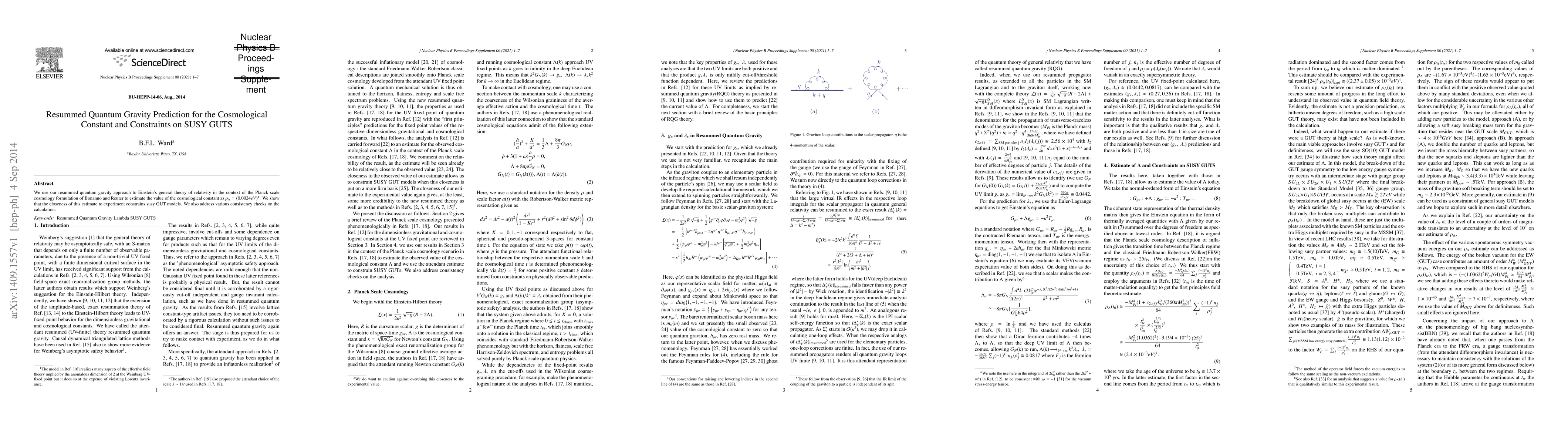 We use our resummed quantum gravity approach to Einstein's general theory of relativity in the context of the Planck scale cosmology formulation of Bonanno and Reuter to estimate the value of the cosmological constant as \rho_\Lambda =(0.0024 eV)^4. We show that the closeness of this estimate to experiment constrains susy GUT models. We also address various consistency checks on the calculation.