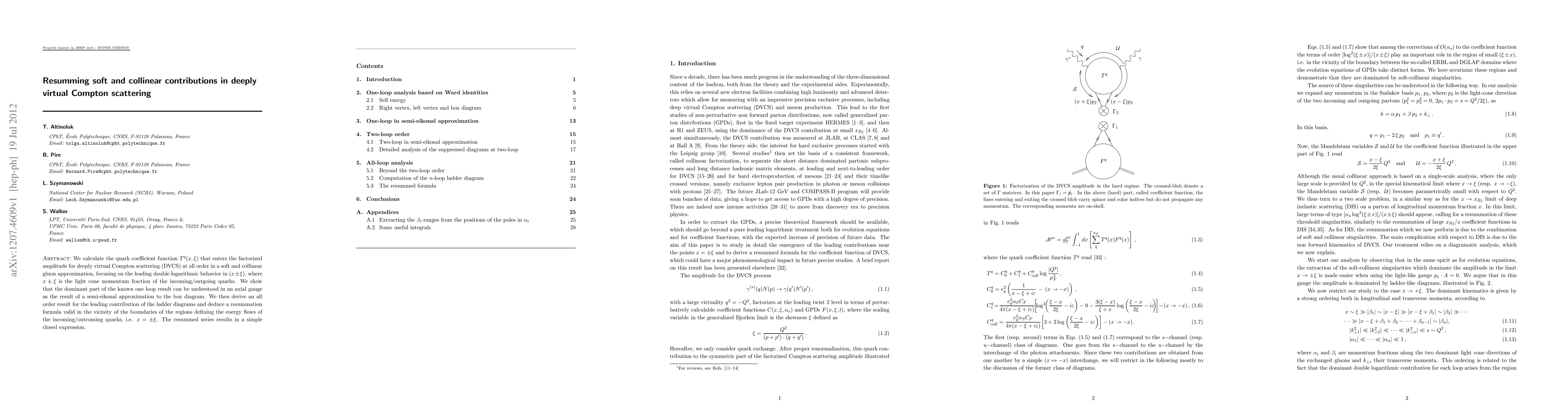 This paper calculates the quark coefficient function for deeply virtual Compton scattering, focusing on leading double logarithmic contributions. It derives an all-order resummation formula for soft and collinear gluon contributions, resulting in a simple closed expression that simplifies the analysis near the boundaries of the energy flow regions of the quarks.