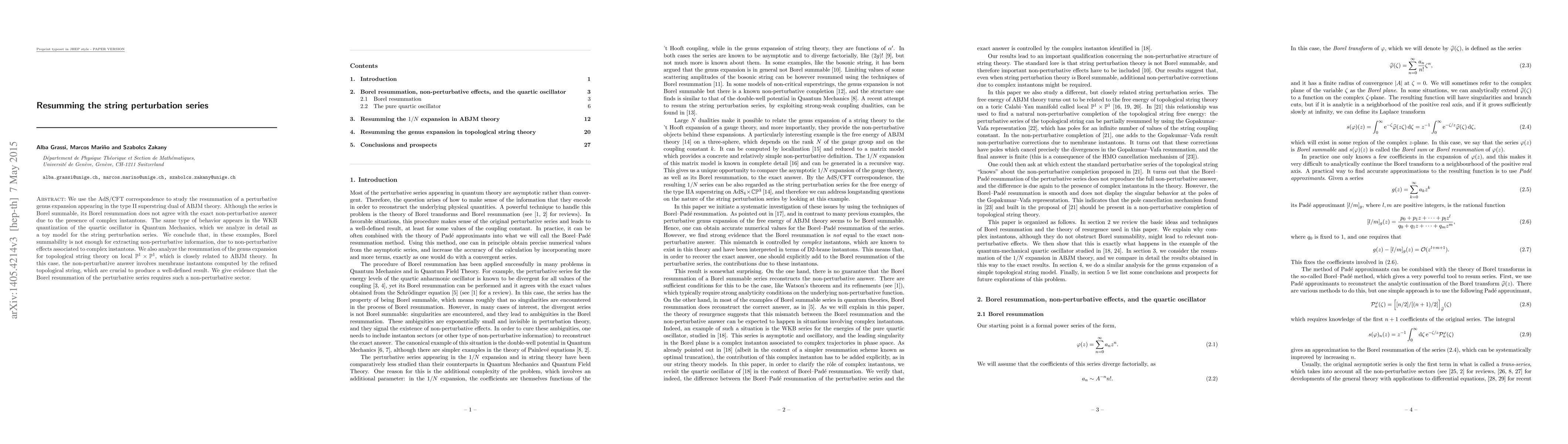 We use the AdS/CFT correspondence to study the resummation of a perturbative genus expansion appearing in the type II superstring dual of ABJM theory. Although the series is Borel summable, its Borel resummation does not agree with the exact non-perturbative answer due to the presence of complex instantons. The same type of behavior appears in the WKB quantization of the quartic oscillator in Quantum Mechanics, which we analyze in detail as a toy model for the string perturbation series. We conclude that, in these examples, Borel summability is not enough for extracting non-perturbative information, due to non-perturbative effects associated to complex instantons. We also analyze the resummation of the genus expansion for topological string theory on local $\mathbb P^1 \times \mathbb P^1$, which is closely related to ABJM theory. In this case, the non-perturbative answer involves membrane instantons computed by the refined topological string, which are crucial to produce a well-defined result. We give evidence that the Borel resummation of the perturbative series requires such a non-perturbative sector.